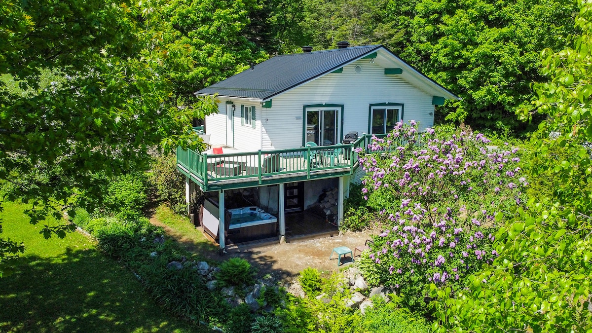Chalet con excepcionales vistas panorámicas a 1 h 15 min de Montreal. ¡Acceso directo privado al río para nadar, chimenea interior y exterior, barbacoa, patio, columpio y más! Numerosas actividades cerca (spa, arbre en arbre, esquí, raquetas de nieve, senderismo, motos de nieve, quads, etc.). También es perfecto para teletrabajar con wifi de alta velocidad (fibra óptica). Número de establecimiento: 227290