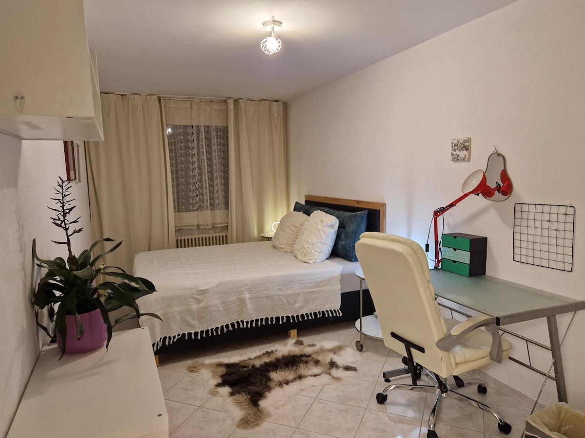Alojamiento tranquilo cerca de la ciudad de Zúrich con una plaza de aparcamiento en el séptimo piso (2 ascensores disponibles) con vistas a la distancia y a la vegetación. Se puede llegar a la estación principal de Zúrich en autobús y tren en menos de 30 minutos, al aeropuerto de Zúrich en 40 minutos. Desde la estación de autobuses hasta la casa hay solo 1 minuto a pie. Hay autobuses cada 30 minutos desde las 05:30 hasta la medianoche.