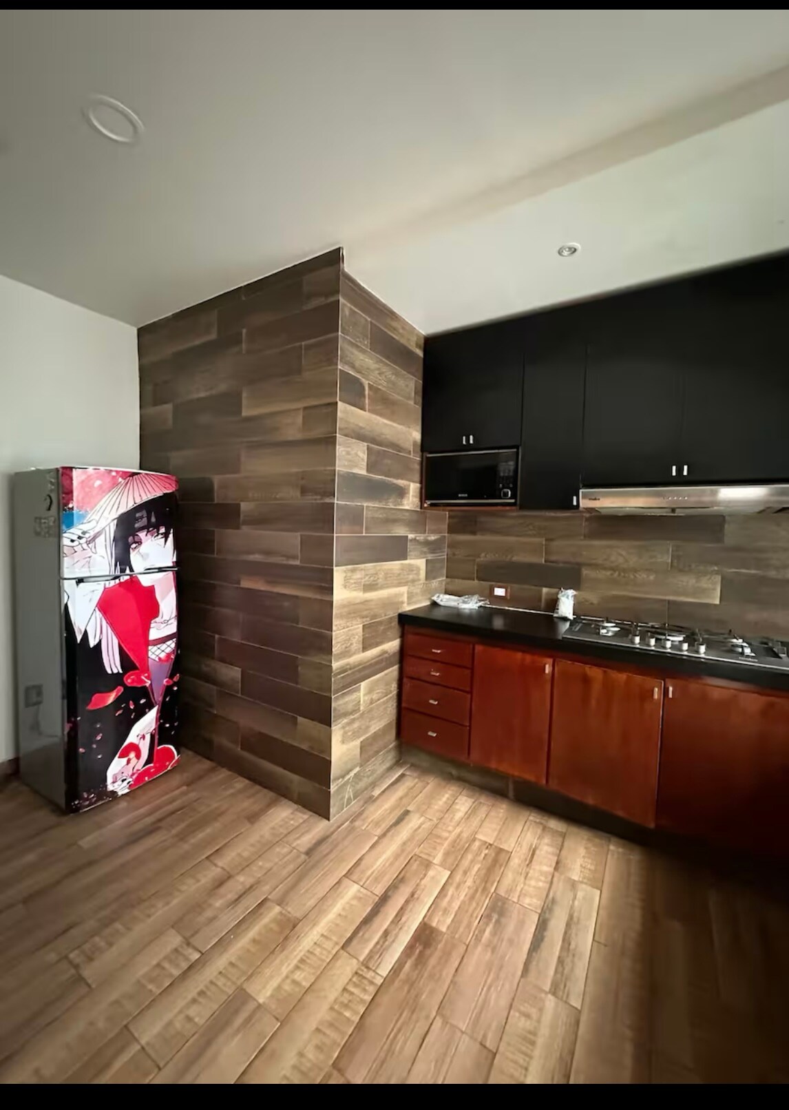 Hospédate en el corazón de Acayucan en un mini departamento práctico y acogedor, ideal para viajes de trabajo o descanso. Disfruta de una cama matrimonial cómoda, TV, clima y ventilador para tu confort. La cocina está equipada con minifrigo, cafetera, mesa y utensilios básicos, además de un sillón con mesa auxiliar, clóset y baño privado con espejo. Su ubicación céntrica te mantiene cerca de comercios, restaurantes y transporte, lo que hace tu estancia aún más práctica y agradable.