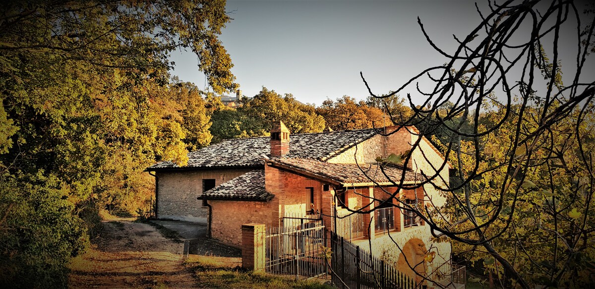 El elegante y elegante es una casa de campo en las fantásticas colinas de Umbría cerca de Todi y Perugia. La casa tiene una vista de 360 grados de viñedos, nueces y bosques. La casa es muy grande y acogedora, con una bonita chimenea, también está equipada con una cocina para disfrutar de la cocina de productos locales típicos. La casa ha sido reformada dejando todas las paredes de piedra, las vigas de madera de castaño expuestas y la terracota original. Si bien los sistemas de calefacción y los baños son completamente nuevos, los sistemas de calefacción son completamente nuevos. Pasar una noche elegante es una experiencia única.