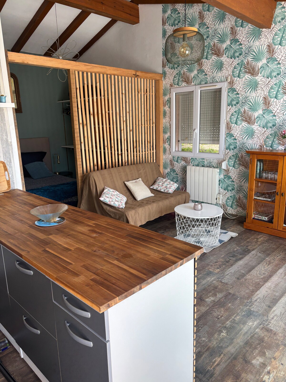Imaginez… vous arrivez dans votre love room au style méditerranéen totalement indépendante, rien qu'à vous. Une terrasse privée où trône le bain nordique. Le soir, vous buvez un verre en contemplant le feu, puis vous vous glissez dans l'eau fumante pendant que le soleil décline. Avec comme décor, les étoiles au-dessus de vous. La nuit, film sur le vidéoprojecteur depuis le lit. Le matin, café sur la terrasse. Tout pour se retrouver et vivre une parenthèse hors du temps 🫶