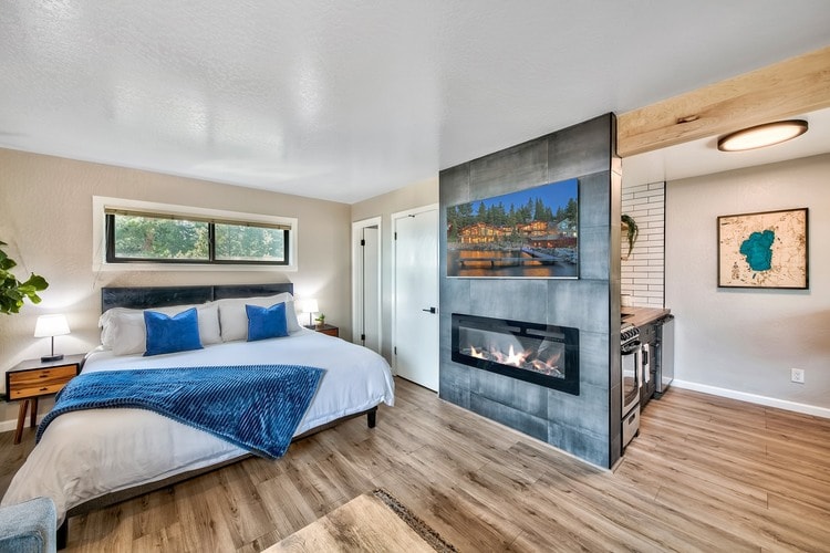 Just 50 feet from Lake Tahoe, this romantic studio is perfect for couples seeking a cozy winter escape. Enjoy private beach and pier access for peaceful shoreline walks, warm up by the fireplace in the plush king bed, and cook simple meals in the fully stocked kitchenette. Walk to dining, coffee, and local shops, then relax on the patio and take in the quiet beauty of Tahoe Vista in winter. We are NOT pet friendly due to HOA rules