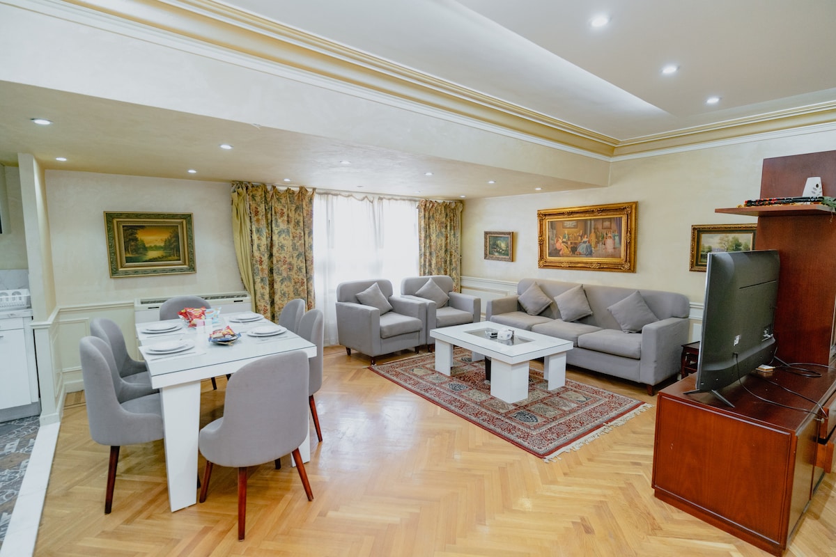 Bienvenido a nuestro lujoso apartamento de 4 dormitorios en el corazón de Mohandessin. Combinando la elegancia clásica con la comodidad moderna, este espacioso apartamento es perfecto para familias, grupos o viajeros de negocios. Ubicado en una zona privilegiada, estás a solo unos pasos de los mejores restaurantes, cafeterías y tiendas. El apartamento cuenta con una cocina totalmente equipada, acogedoras salas de estar y elegantes dormitorios. Experimenta comodidad y estilo en un refugio hogareño.