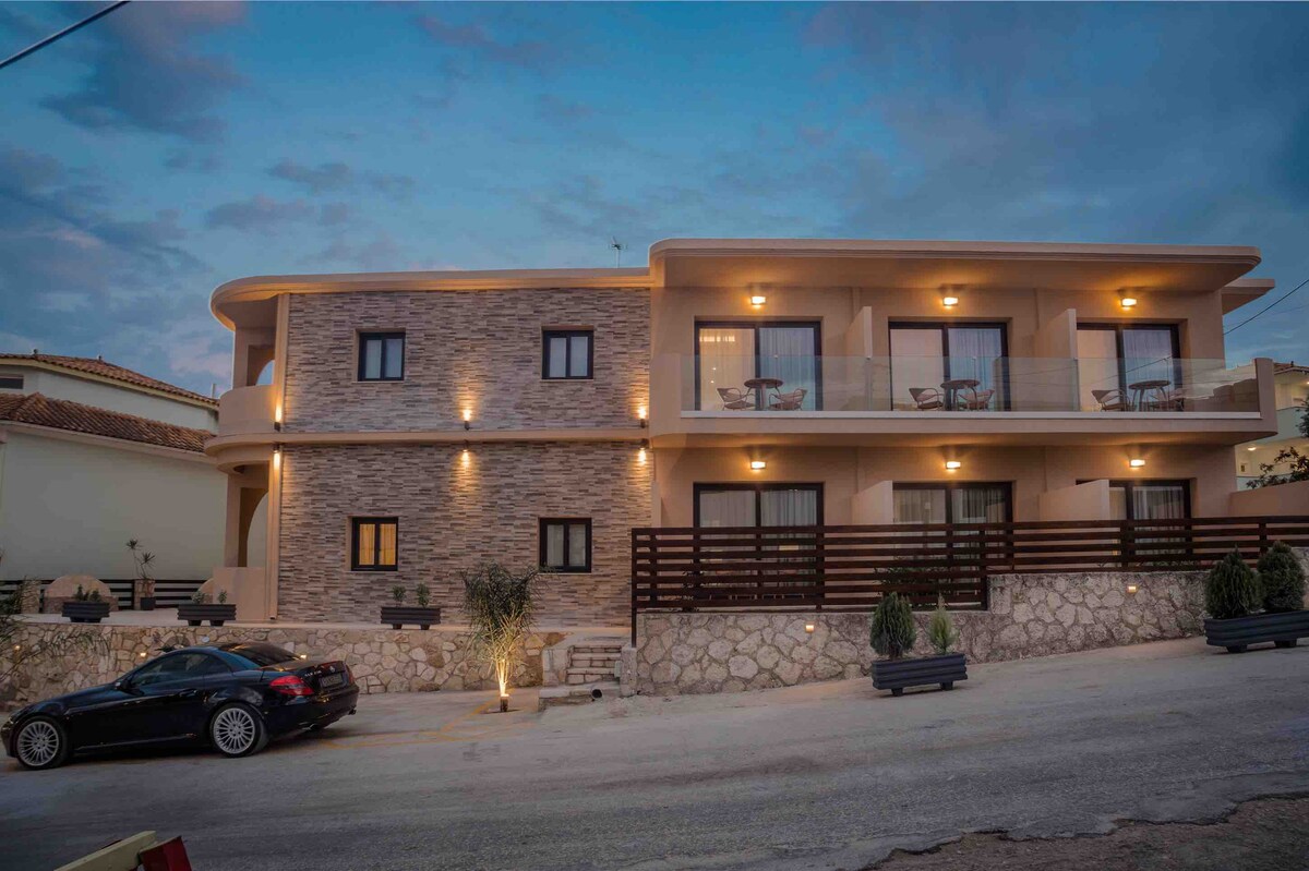 Μόλις 6 λεπτά με το αμάξι απο το κέντρο της Ζακύνθου. Δίκλινα δωμάτια με θέα στη θάλασσα ή στον κήπο.