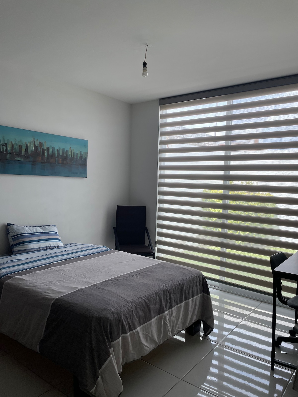 Amplios espacios con gran iluminación natural, seguridad y limpieza, 205m2 a tu disposición en la avenida principal a 5 minutos del área de la feria con todo a la mano para tu comodidad ya sea solo, en familia o de trabajo. Ideal para descansar, meditar, relajarse o trabajar. (huésped a partir del 3o que ocupe la casa debe ser dado de alta, huésped extra $290. No requieres de cargar con elementos extra, todo lo tendrás aquí. Amplia habitación con una cama king y 2 Indiv. con baño propio.