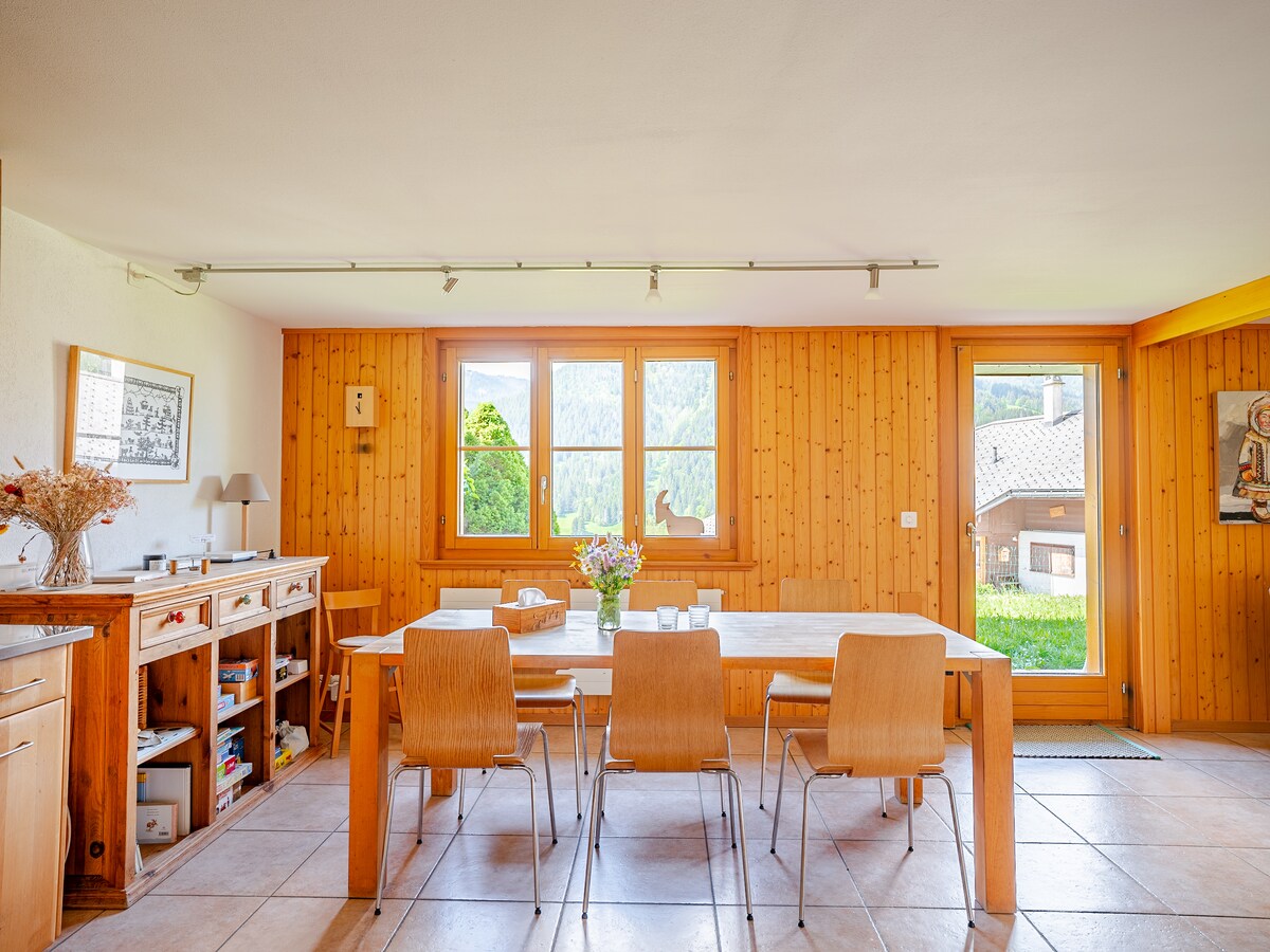 Departamento soleado con excelentes vistas a las montañas y al pueblo, espacio grande, moderno y cómodo, cocina abierta totalmente equipada; terraza sur, tranquilo; sofá convertible en parte de la sala de estar que se puede separar y transformar en un segundo dormitorio; a 10 minutos a pie del pueblo, junto a pistas de esquí y senderos de senderismo; situado a 1200 m, rodeado de montañas que culminan a 3000 m en el glaciar; cerca de Gstaad, Villars y el lago Lemán Se pagará un impuesto de visitantes (Fr 3/persona y noche).