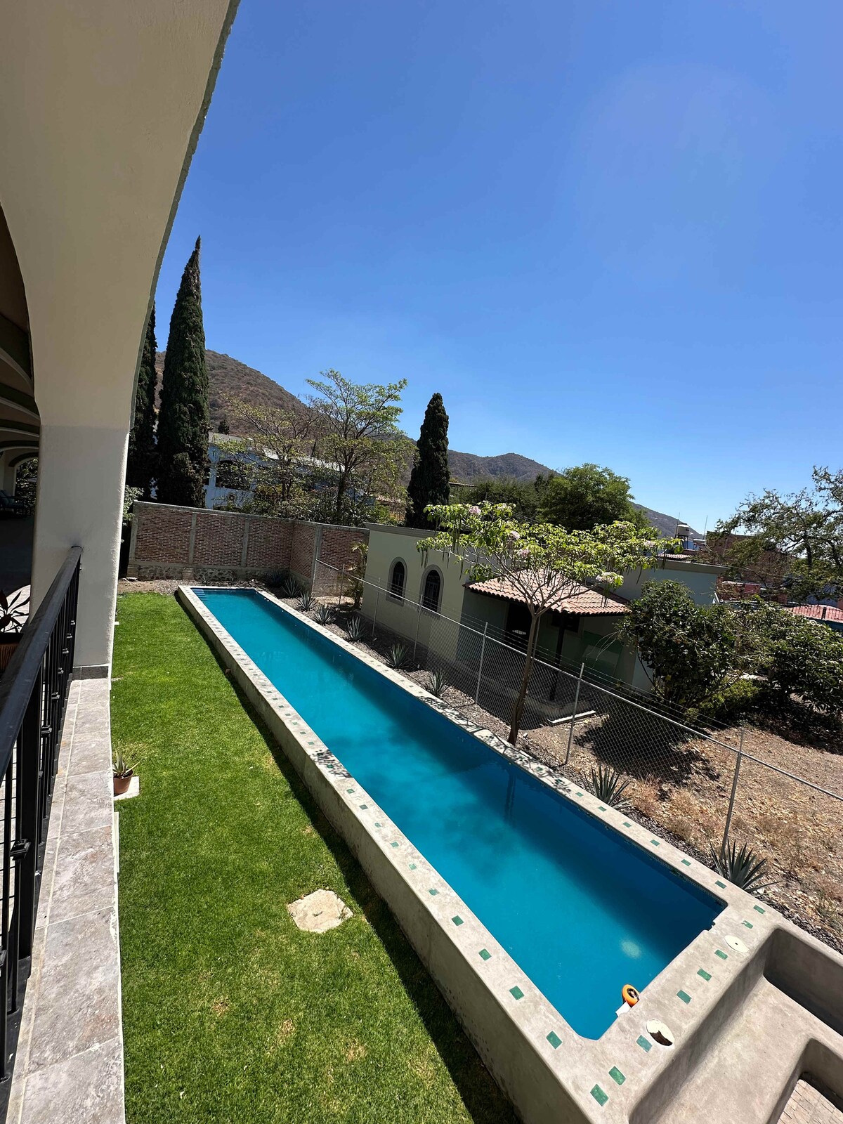 Designer Mexican villa offers a private solar-heated pool, lush garden, AC throughout, and a blend of traditional charm and modern comforts. Just blocks from Lake Chapala, the Malecón, the Plaza and steps from a nearby bar, shops, restaurants, and galleries. Relax in the pool, enjoy horses passing by, or festive parades. A peaceful retreat after exploring Ajijic and Lake Chapala. ☞ Private Pool | Garden | Patio ☞ Lake Access (5 min) | Concierge* ☞ 1 Bedroom w/ Ensuite | Fast WiFi 214 Mbps