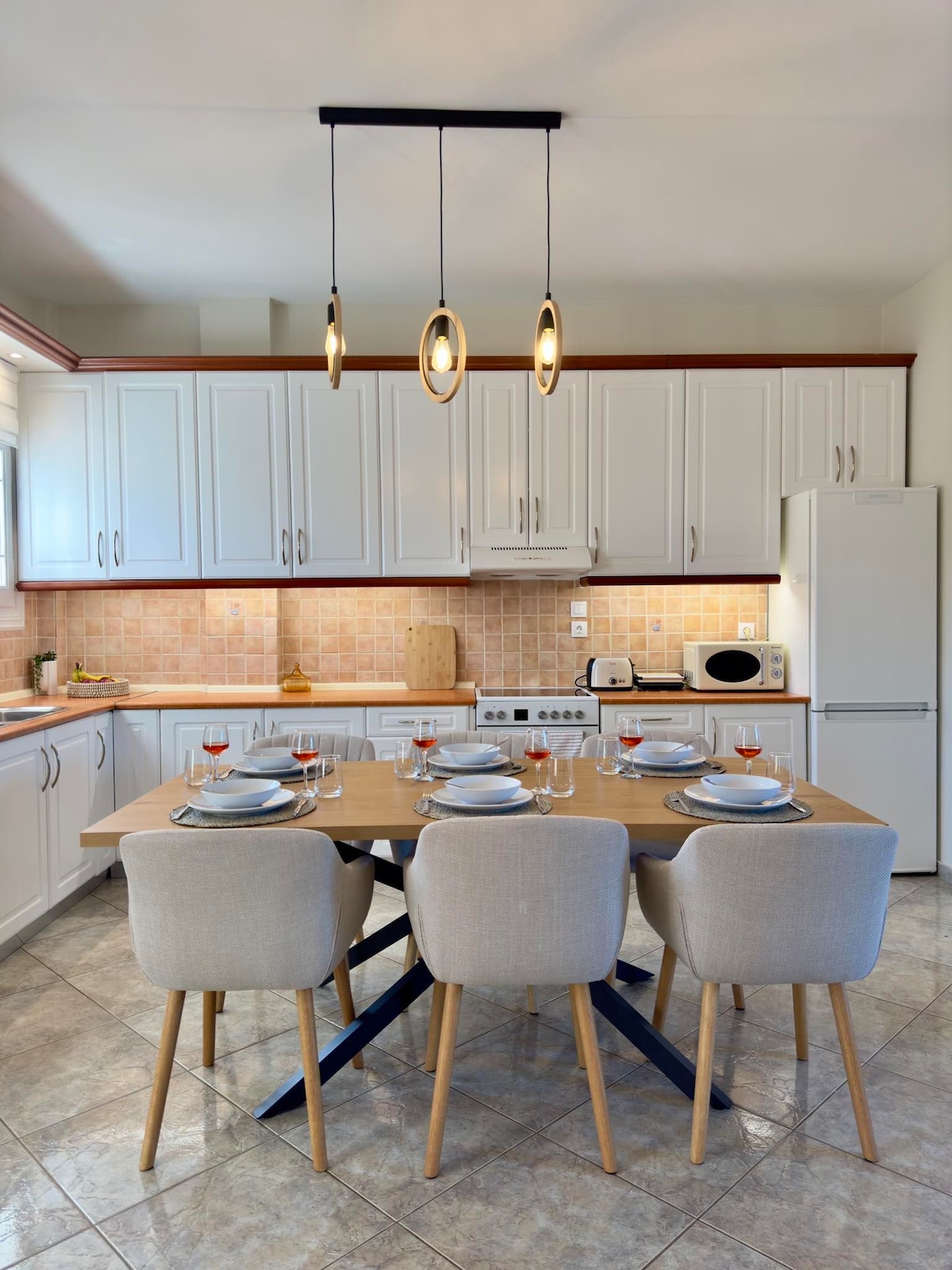 Rena 's Sweet Home es una casa de vacaciones unifamiliar de 3 dormitorios, deliciosamente bonita y recién reformada. Acogedor, espacioso, acogedor y perfectamente ubicado entre la famosa Roda y la tranquila Agnos, este alojamiento vacacional verdaderamente especial tiene capacidad para 6 personas y ofrece una relación calidad-precio inmejorable. Con amplias zonas al aire libre, preciosas vistas al mar y a las montañas, interiores con aire acondicionado y rodeada de la paz de olivos centenarios, ¡esta pequeña villa te sorprenderá!
