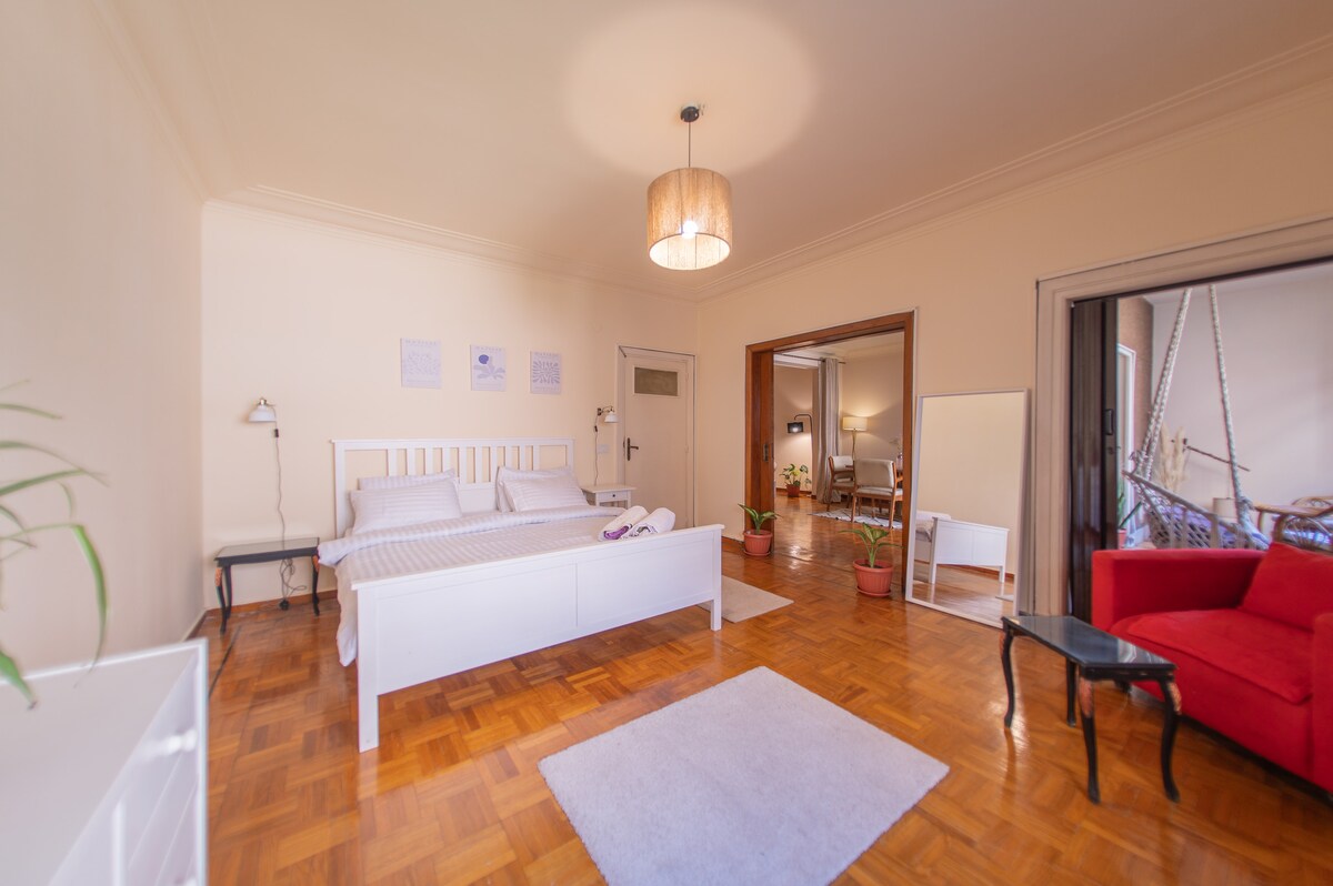 ¡Solo los alojamientos de Zamalek están en Zamalek, otros lugares cercanos están llenos de gente y son ruidosos! Tu hogar soleado, acogedor y tranquilo en Zamalek, cerca del RÍO NILO, con un toque beduino del SINAÍ y con techos altos, suelos de madera, azulejos egipcios y baño de mosaico con aire acondicionado frío/calor. En el centro artístico, a 20 minutos del MUSEO EGIPCIO, a 15 minutos a pie de la NUEVA franja peatonal del CENTRO y a 1 minuto a pie del metro Rodeado de embajadas, tiendas de comestibles, restaurantes, cafeterías y bares. El lugar más vibrante de El Cairo