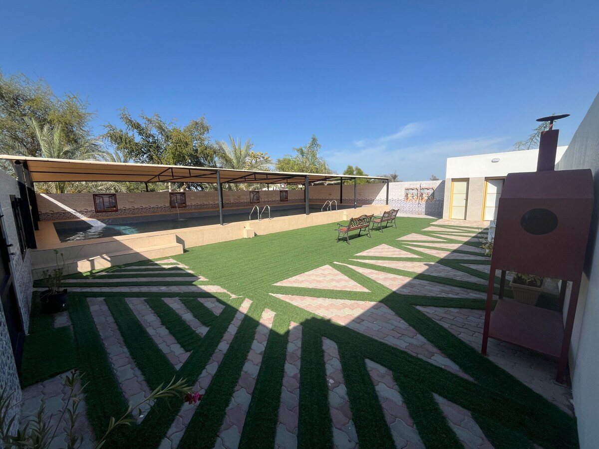 El chalet de la granja Al Mazyoona, consta de 2 dormitorios, 2 salas de configuración, cocina, 3 piscinas interiores y al aire libre, área de estar tradicional, área de barbacoa, parque infantil de fútbol y equipo de juegos para niños. Ubicado en AlSuwaiq (Sultanato de Omán), se encuentra a 125 km del aeropuerto internacional de Muscat, la zona comercial está A 1 KM del chalet de la granja, a 1 km de la playa. Todo el chalet de la granja está reservado para ti en privado sin compartir, lugar donde puedes relajarte y disfrutar. Las alfombrillas adicionales son gratuitas