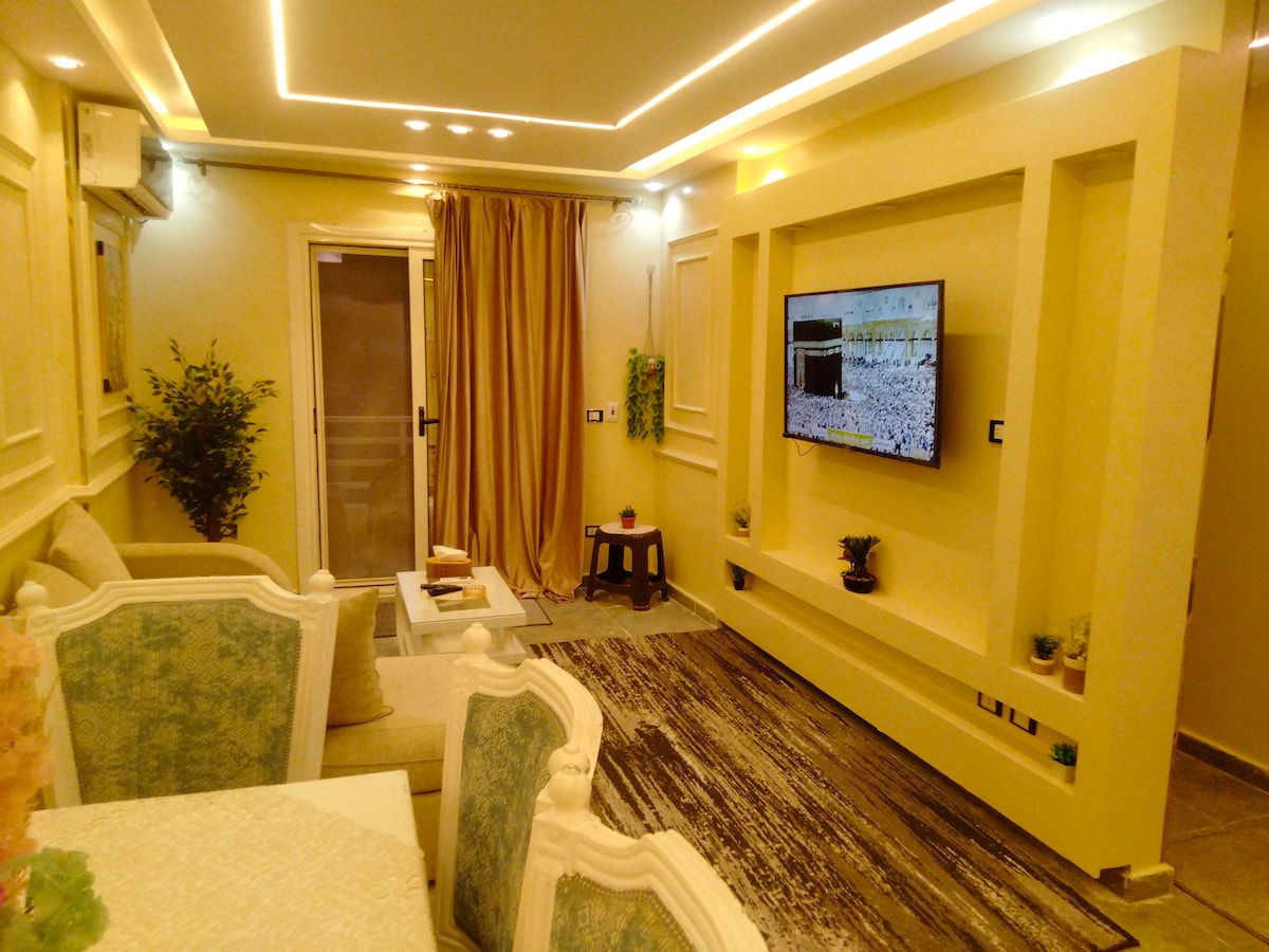 Stylish apartment by the sea. it has 2 bedroom & wide reception. 2 corner sofabeds wide space new furniture and appliance. A/C bedroom +Flat screen 32" &heater Kitchen fully equipped, microwave ,also stove and oven. wide T.V 45" with 1000 channel also smart in the reception. 2nd bedroom + 2 beds full& closet wide circle balcony directly on the sea. The sound of the sea is very relaxing and helps you sleep. 24 hour security,ccctv,a gatekeeper and maid to assist our guests. Delivery to doorstep