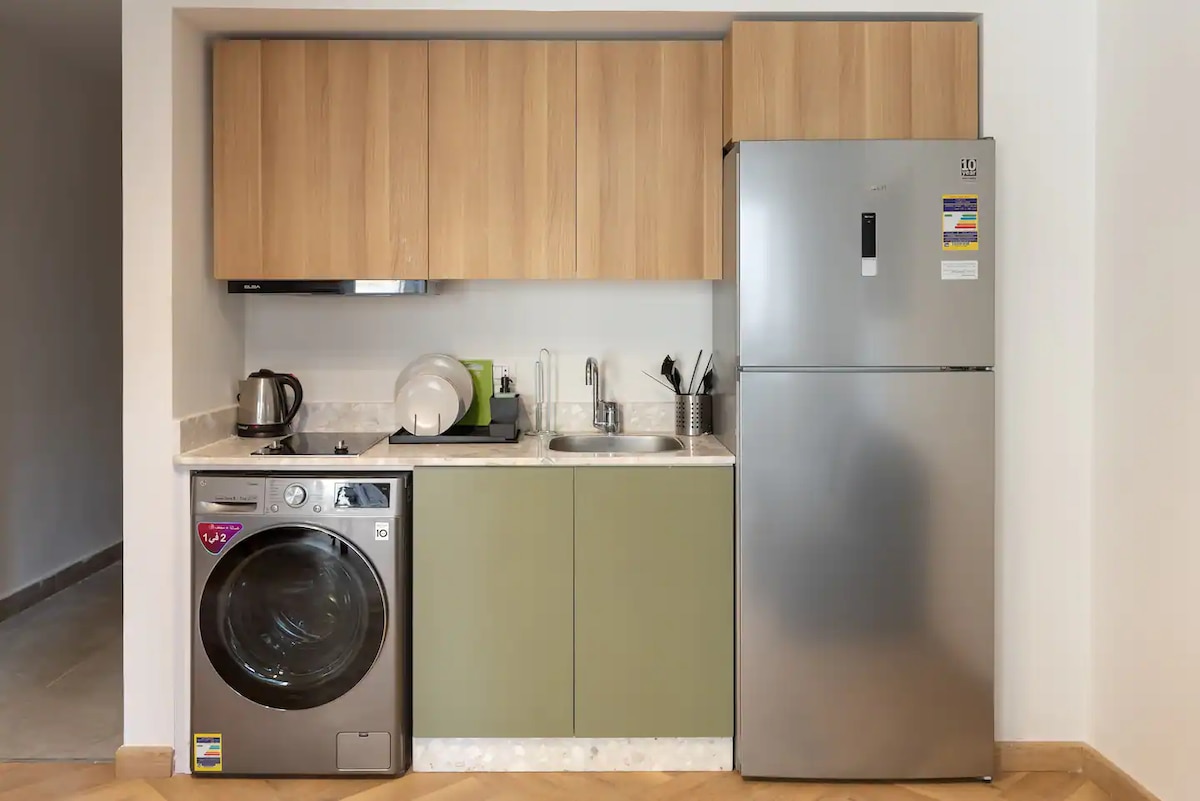 Este apartamento de 2 dormitorios con vista trasera ofrece un refugio tranquilo en el corazón del centro de El Cairo. La decoración de inspiración vintage del espacio le da un carácter distintivo. Estándar de Lemon Spaces: - Wifi rápido. - Acceso con cerradura inteligente. - Limpieza profesional - Toallas limpias. - Asistencia 24/7 - Kit de bienvenida semanal gratuito. - Servicio de limpieza dos veces por semana. - Ropa de cama cómoda. - Artículos de aseo. - Diseñado profesionalmente. - Conserje en línea. Servicios del edificio: - Recepción. - Dos veces limpieza a la semana.