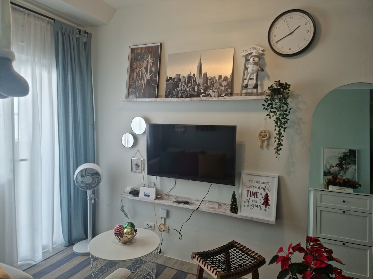 Nuestra unidad de 1 dormitorio con balcón tiene una cama doble completa con cama extraíble, una cocina pequeña donde se permite cocinar ligeramente. La unidad tiene su propio baño, TV inteligente de 55" con Netflix, wifi ilimitado y un sofá reclinable donde los huéspedes pueden ver cómodamente. También hemos añadido Echo Show con Alexa (compatible con Spotify) El lugar está a solo 3-5 minutos a pie de SM Southmall y muy accesible a casi todo. La unidad es perfecta para huéspedes responsables que viajan solos o con su pareja e hijo.