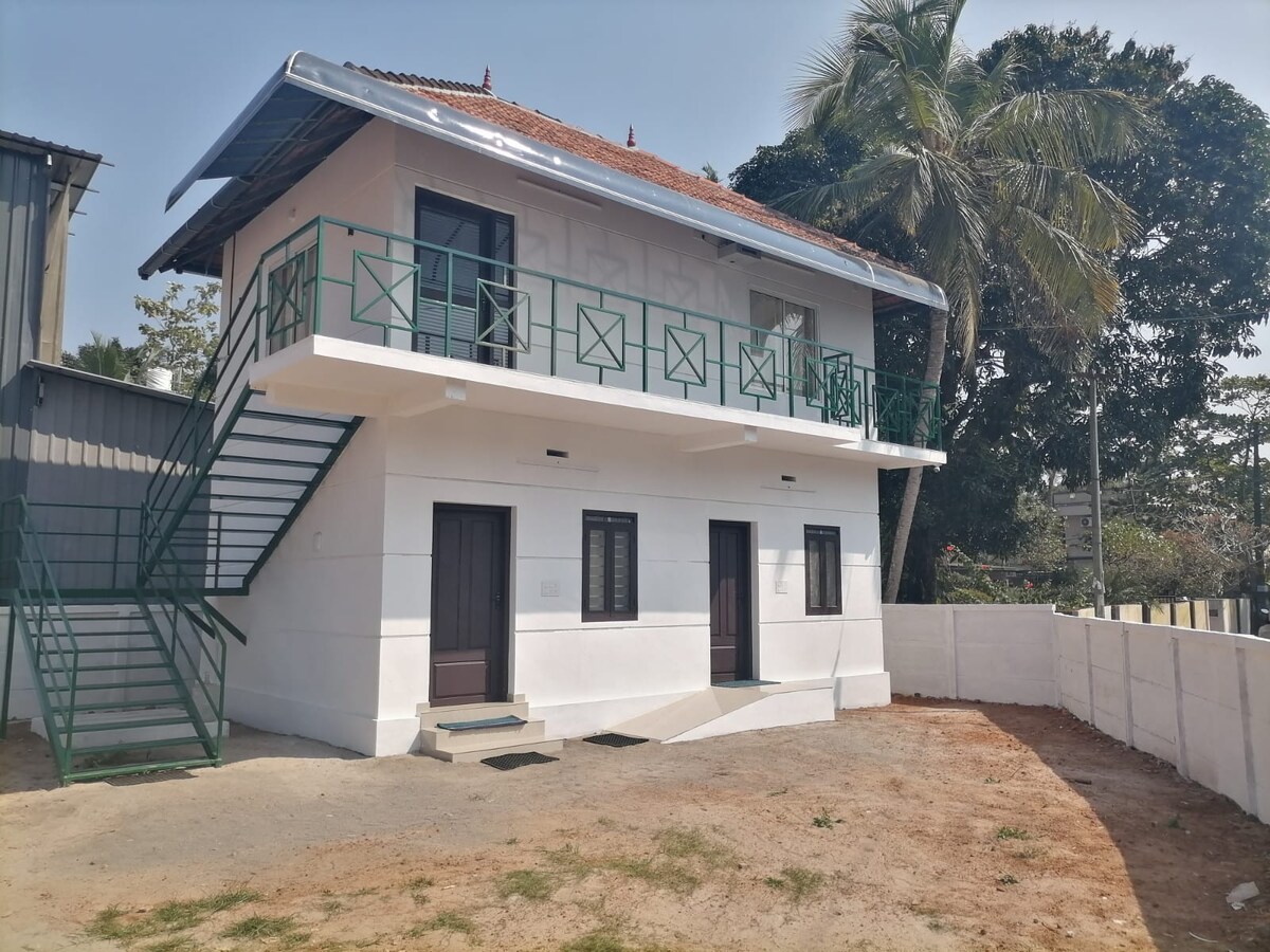 Amplio apartamento de nueva construcción en la frondosa Changanacherry. Este es tu hogar lejos de casa, perfecto para una reunión familiar/de amigos, casas de vacaciones, alquileres de corta estancia y vacaciones para turistas. La casa está ubicada en la carretera, tiene fácil acceso al hospital, escuelas, restaurantes y estación de tren. Gracias a la ubicación céntrica de este alojamiento, tú y los tuyos lo tendréis todo a mano. Aparcamiento seguro disponible.
