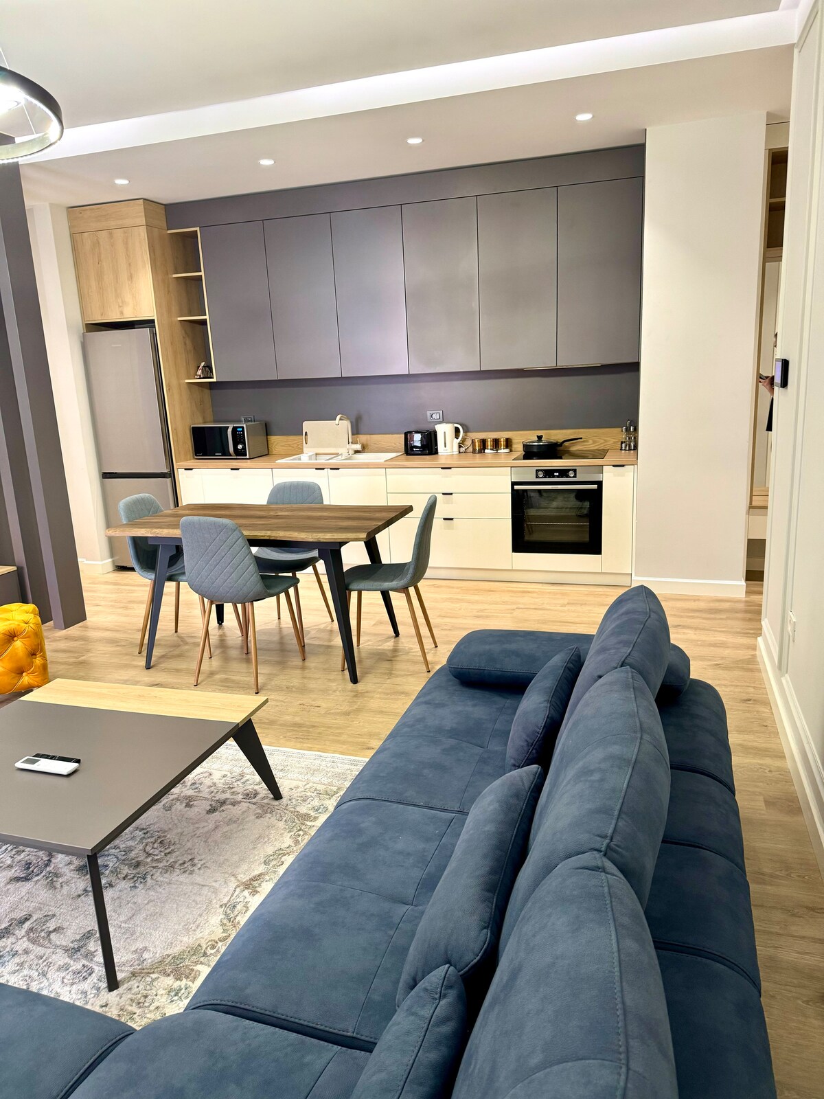 Condominio especial recién amueblado en el centro de Tirana (a 5 minutos a pie de la plaza Skanderbeg). Disfruta cómodamente de un espacio tranquilo, moderno y relajante mientras visitas Departamento en el cuarto piso y no hay ascensor, así que ten en cuenta. Podemos ayudarte con las maletas. Piscina, gimnasio, sauna adicional a 2 minutos a pie en el hotel Black Diamond Los muebles y el diseño apuntaban a la máxima comodidad La zona es segura y tranquila a 8 minutos a pie del centro y del transporte público principal y los traslados al aeropuerto o a cualquier ubicación principal.