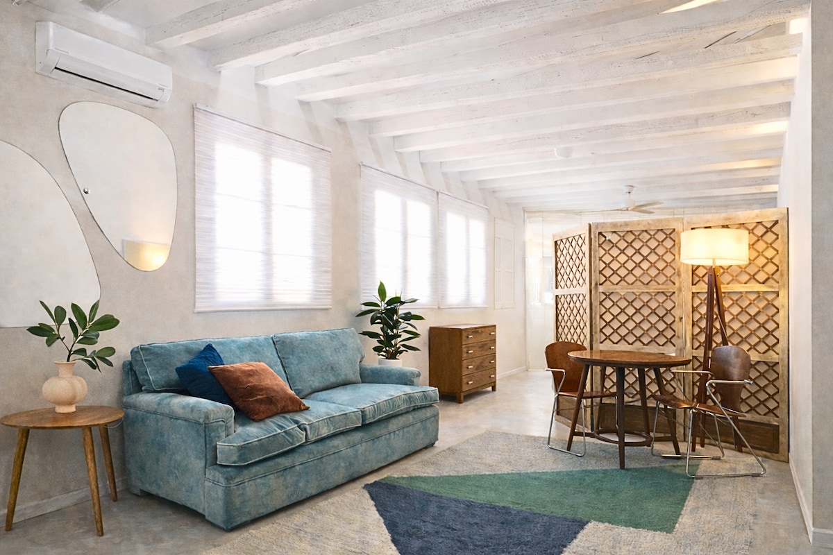 Luminoso y acogedor loft en el corazón de Malasaña, uno de los barrios más vibrantes y creativos de Madrid. Con 40 m², techos altos y vigas de madera vistas, ofrece un ambiente cálido y con personalidad. Cuenta con cocina equipada, zona de estar con sofá, cama muy cómoda y baño tipo wet room, un espacio integrado con ducha, lavabo e inodoro. Fue mi estudio fotográfico, hoy reconvertido en un lugar único, ideal para escapadas en pareja.