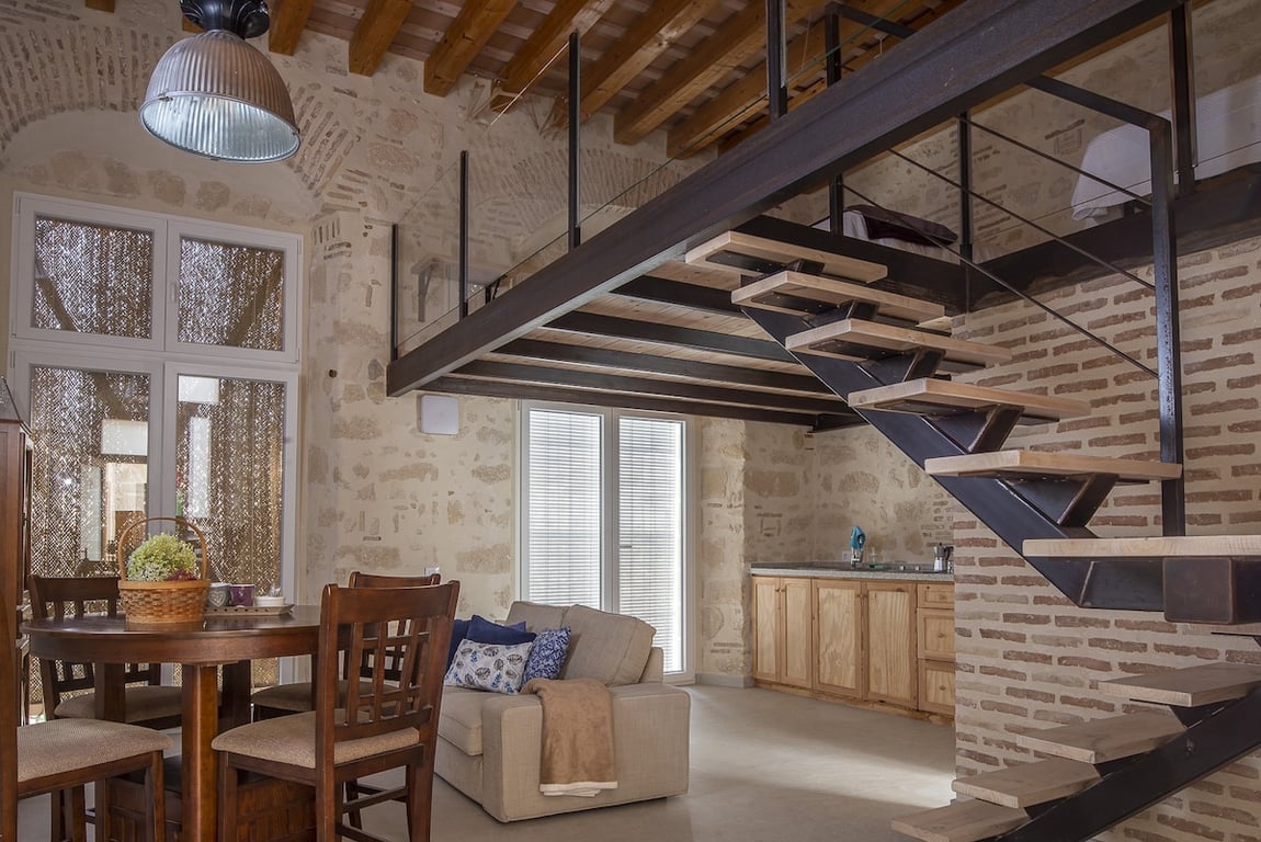 Apartamento que ocupa la primera planta de un edificio del siglo XIX, rehabilitado por completo respetando la fachada romántica. Decoración actual muy cuidada. Tiene cabida para 4 personas, salón-comedor, cocina aboerta al salón y un baño. Las estancias son muy amplias y especialmente luminosas, al estar situado en esquina dispone de 4 ventanas y balcones en el salón donde entra mucha luz todo el año. La casa es una primera planta sin ascensor con una escalera cómoda de unos 20 escalones.