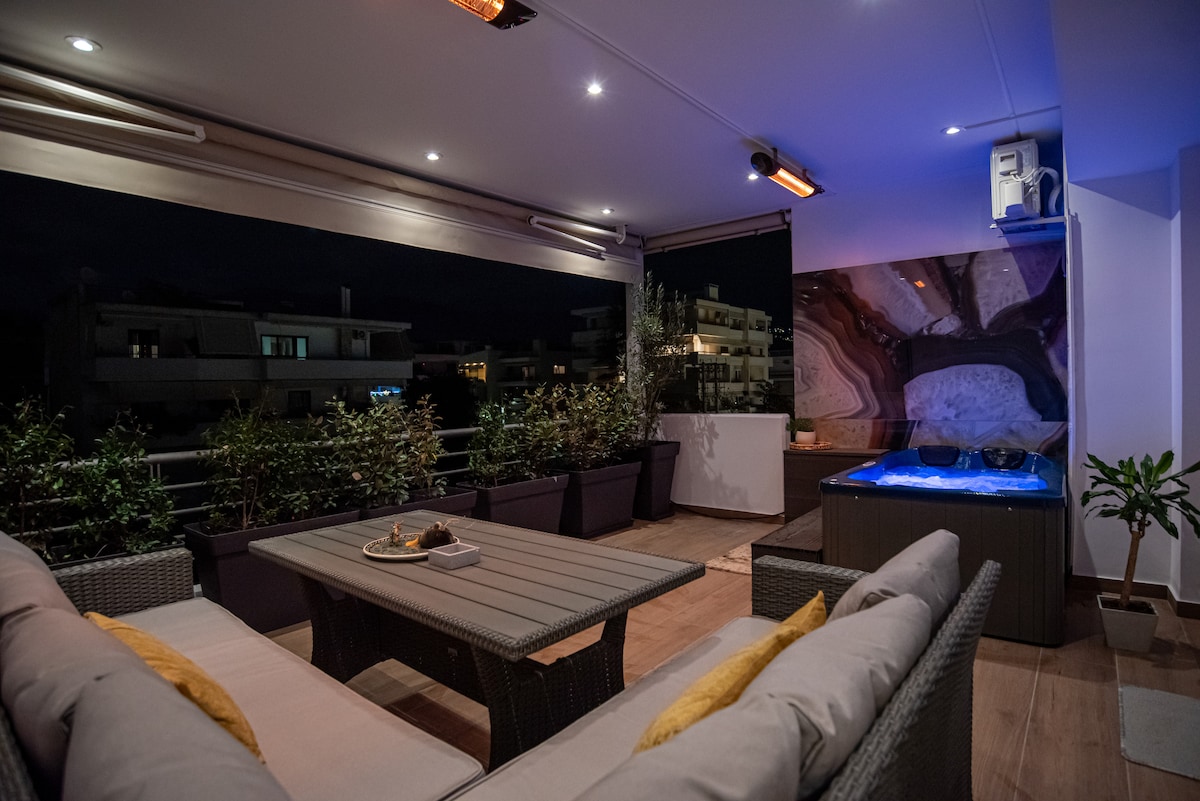 ¡Azotea romántica con vistas a la Acrópolis y jacuzzi!