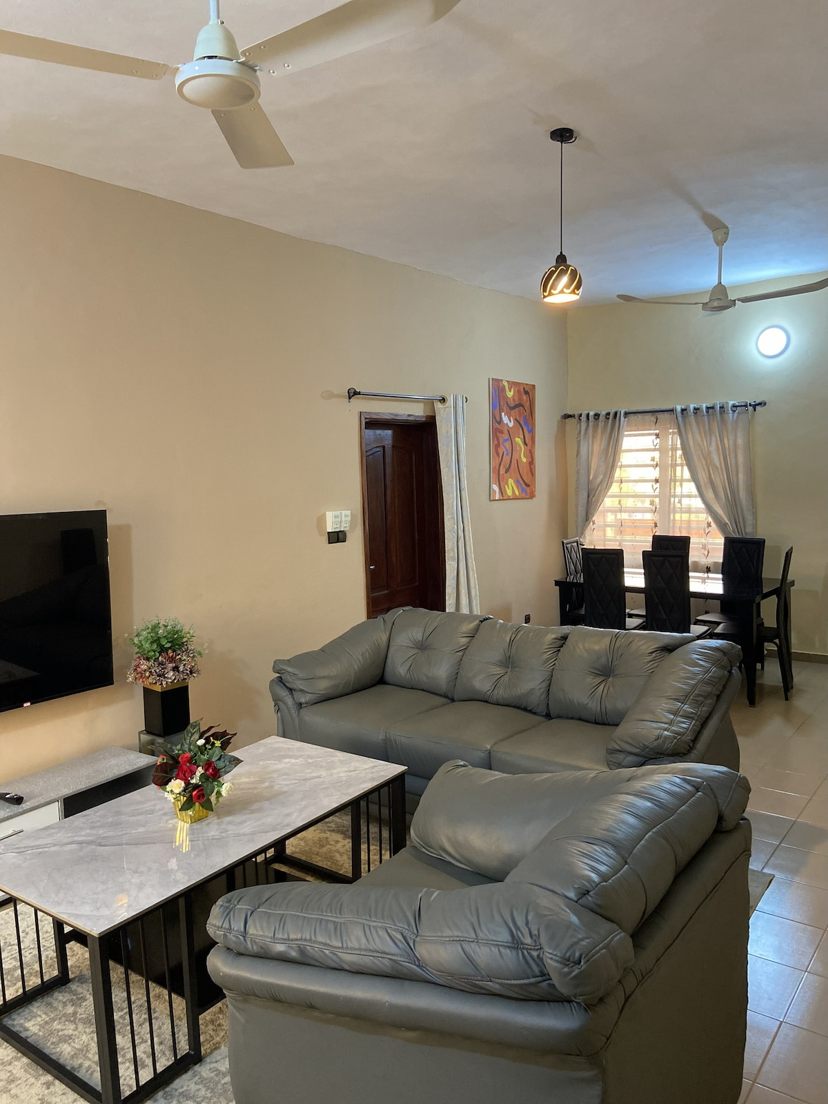 Bienvenue dans notre Villa meublée, où vous pourrez profiter d’un confort et d’un cadre idéal pour votre séjour. Il est composé d’un salon spacieux et 3 chambres toutes climatisées. Notre villa vous assure une intimité totale pendant votre séjour. Il est équipé d’eau chaude et d'une sécurité totale (gardien, clôture électrique). 4 voitures peuvent être garées dans la maison. Pour votre divertissement, vous pourrez profiter d’un réabonnement CanalSAT et d’un routeur wifi pour rester connecté.