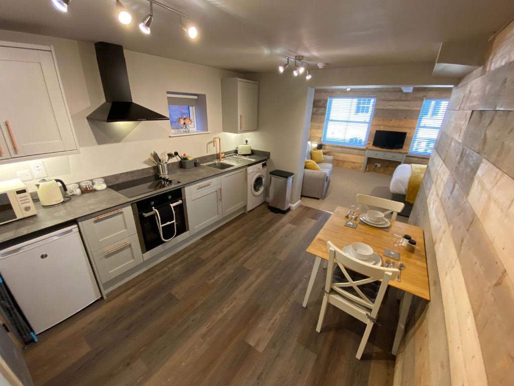 Esta mágica y elegante joya de una casa de campo de vacaciones está situada en los terrenos de una casa adosada georgiana en el corazón de la ciudad de Hereford. Esta propiedad recién renovada tiene una cocina abierta y una sala con cocina, fregadero, nevera, barra de desayuno con taburetes, sofá y TV. Llena de detalles de diseño hermosos y peculiares, esta casita es una alegría para estar. Subiendo las escaleras pintadas de oro hay un dormitorio con cama doble, escritorio, ganchos y perchas y un baño con bañera y ducha sobre el baño.
