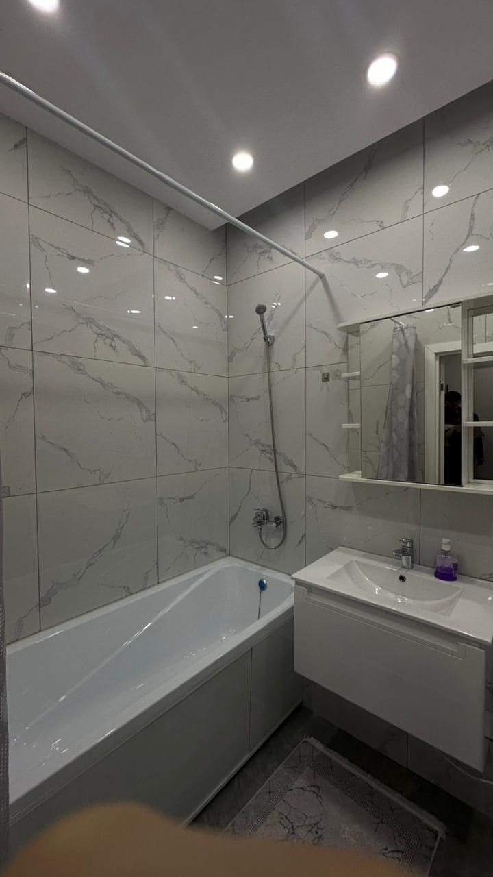¡Te damos la bienvenida a tu elegante y acogedor refugio en el centro de Almaty! Este moderno apartamento estudio está diseñado para la comodidad, ya sea que estés aquí por negocios o por placer. La sala de estar incluye un moderno sofá que se transforma en una cama cómoda con sábanas limpias para un sueño reparador. Un espacio de trabajo dedicado hace que sea fácil trabajar de forma remota. La cocina totalmente equipada tiene todo lo necesario para preparar tus comidas favoritas, mientras que la amplia sala de estar ofrece un espacio acogedor para relajarse con un televisor inteligente.