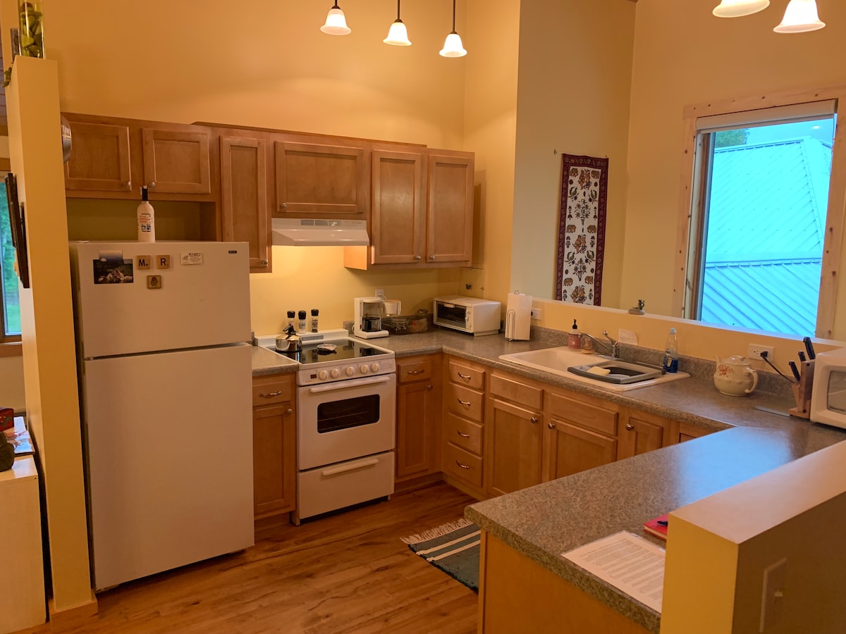 Enjoy summer days or wintry splendor. We are located in a rustic area of northwest Michigan, 15 miles north of Harbor Springs, within 2 miles of the Tunnel of Trees. We are conveniently located for nature preserves, hiking trails, beautiful beaches, ski slopes, and Mackinaw Island. Our home is attached to the guest suite but guests access their suite via a secured private entrance. Our equipped kitchen has a pantry, fresh farm eggs, butter, a home-baked item, ground coffee, and teas.