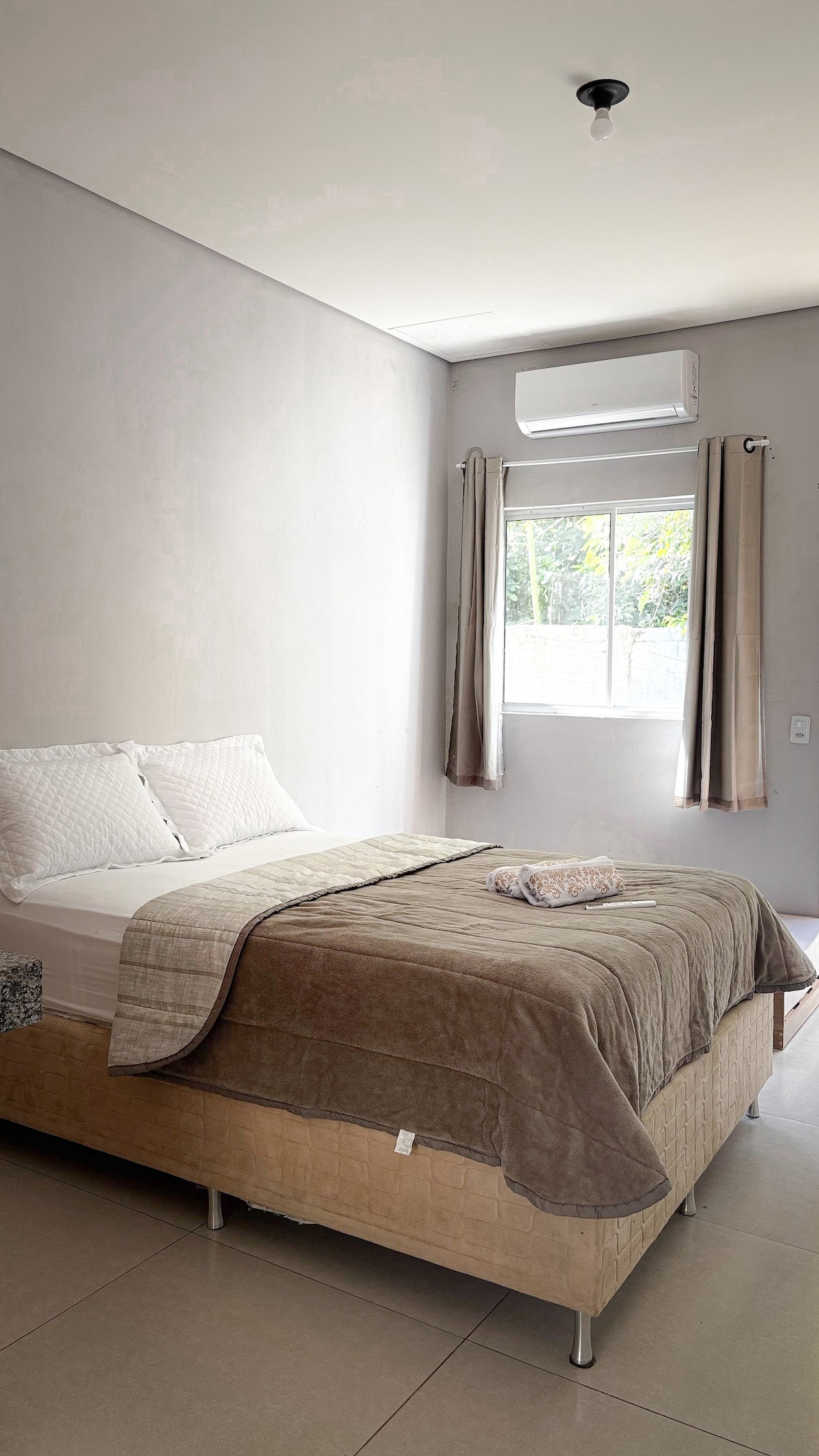 Bem-vindo! Nosso apê é aconchegante, moderno e cheio de luz😍 São 2 quartos: ❄️ Um com ar-condicionado para noites fresquinhas 🌬️ Outro com ventilador pra manter o clima agradável A cozinha é equipada com geladeira, fogão e utensílios 🍳 - ideal pra preparar suas refeições. A sala é ampla, com decoração clean e iluminada ✨, além de um espaço charmoso para refeições ou trabalho 💻🍽️ E ainda conta com lavanderia com máquina de lavar 🧺 Perfeito para sua estadia, com conforto e tranquilidade!