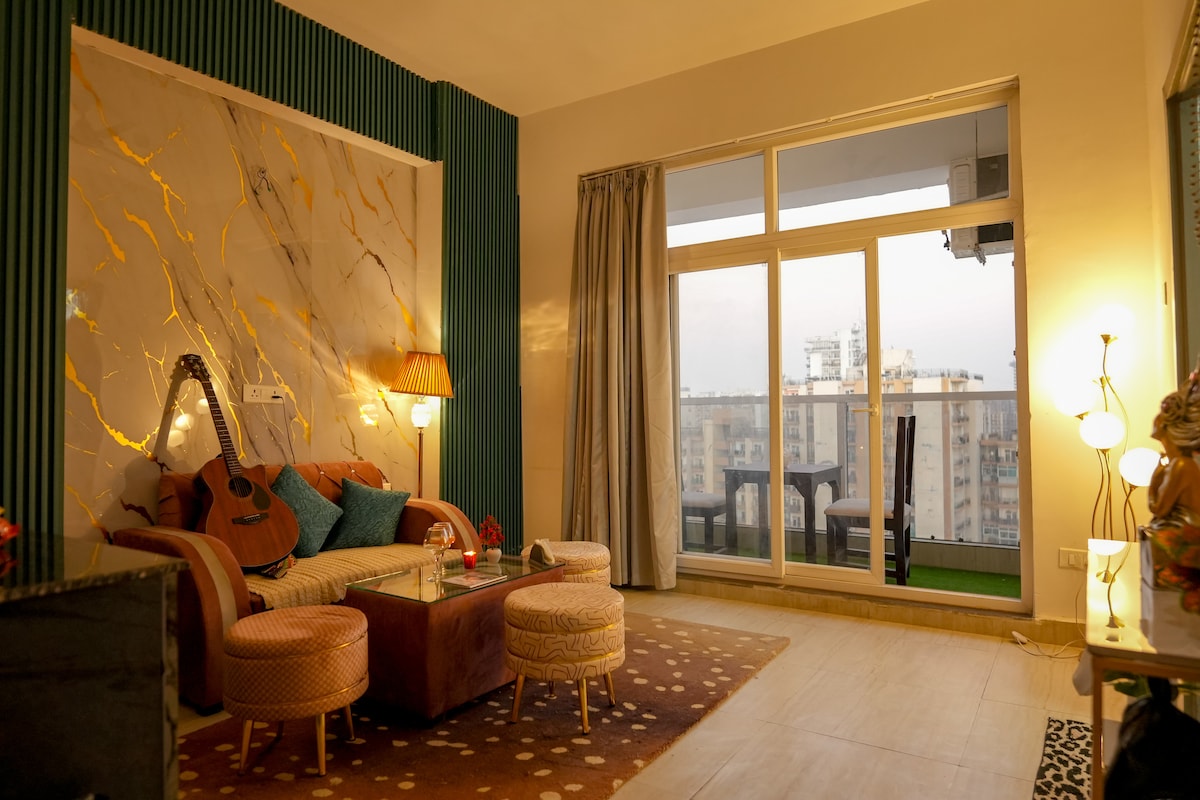 ✨ A Private Luxury Escape Above NCR ✨ Step into a beautifully designed studio apartment in Supernova, offering one of the most breathtaking elevated views in the entire NCR. This is a space created for couples and quiet stays, where luxury, privacy, and calm come together effortlessly. Enjoy a stylish interior, a private balcony, and a peaceful atmosphere that feels far removed from the noise below — yet right in the heart of it all. For a romantic getaway or a special occasion.