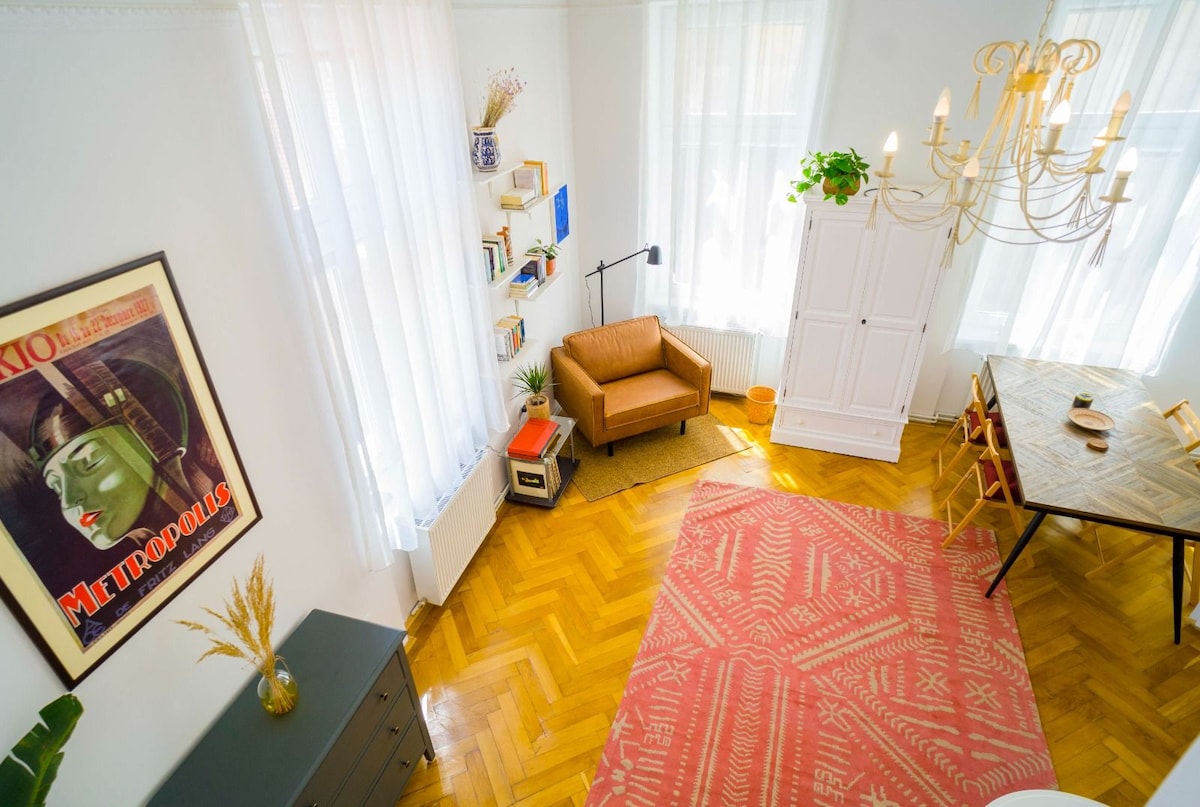 Nuestro departamento está a pocos pasos de Piata Mare (Grand Square) en Sibiu. Ubicado en un edificio histórico de 200 años de antigüedad, cuenta con un acogedor dormitorio, sala de estar con TV inteligente (Netflix), wifi rápido y cocina totalmente equipada con cafetera, estufa y lavadora. La calefacción central mantiene las cosas calientes en invierno y el aire acondicionado está disponible durante el verano. Una pequeña terraza privada agrega encanto adicional, perfecta para relajarse después de un día explorando la ciudad.