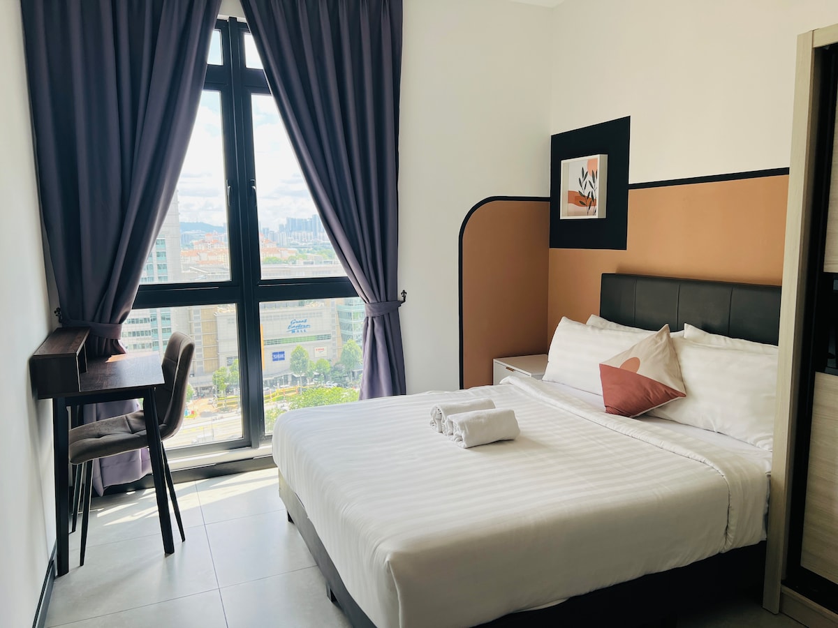 📍Pertama Residency Welcome to my New Bnb - Moonrise City! Este estudio está recién preparado con mucho amor, combina la decoración contemporánea con comodidades modernas y una experiencia, todos pueden disfrutar especialmente del momento del jacuzzi con tu amor y pantalla de proyector de 120pulgadas con Netflix. Este lugar único tiene un estilo propio, ofrece un ambiente acogedor, limpio, tranquilo y refrescante para parejas. ¡Ven y experimenta en el nuevo bnb! Nos vemos.