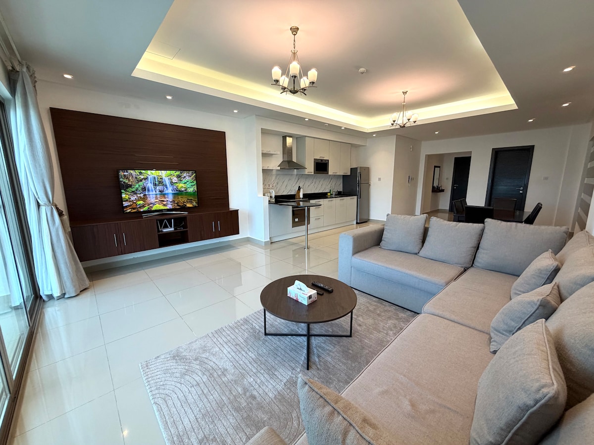 Apartamento moderno totalmente amueblado con todo lo que puedas imaginar, incluyendo lavadora/secadora, wifi, cocina totalmente equipada y amplio aparcamiento frente al edificio de apartamentos. El apartamento está a 10 pasos del restaurante/bar Lanterns en Amwaj y a 5 minutos a pie de Lagoon, una popular zona comercial y de restaurantes en la isla Amwaj. Los huéspedes tienen acceso a la playa privada de Floating City.