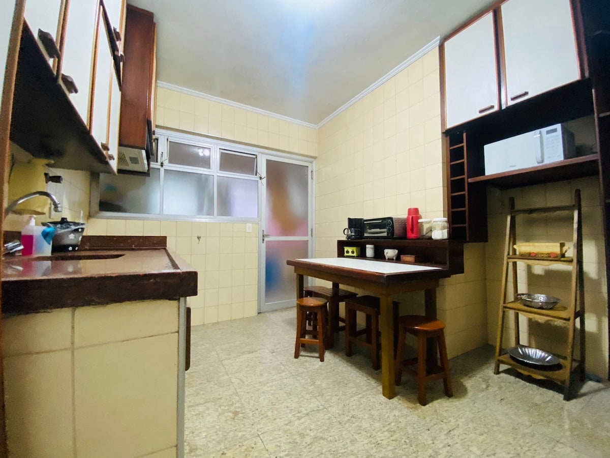 Apartamento acogedor y muy bien ubicado. Situado en el mejor barrio de Santos, a 50 metros de la playa y a dos cuadras del centro comercial Praia Mar. Cerca de centros comerciales, panaderías, bares, restaurantes, bancos, mercados y farmacias. Excelente ubicación para aquellos que vienen a practicar pruebas deportivas como triatlón, carreras y pruebas acuáticas, ya que está cerca de la salida. Perfecto para home office y para parejas con hijos. Cocina completa con utensilios de uso diario