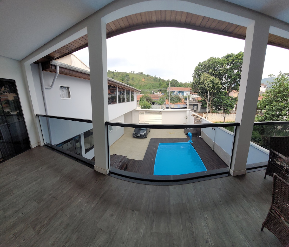 Casa de 1904 reformada, ubicada en el centro histórico, corazón de la ciudad de Aparecida. Entre dos basílicas (a 5 metros de la Iglesia Matriz, a 50 metros del Santuario Nacional), además de la vista al cerro del Cruzeiro y Serra da Mantiqueira. • Capacidad máxima: 11 personas • Espacios: 4 habitaciones, una de ellas en suite (todos con aire acondicionado y smart TV) 2 baños 1 cocina 1 sala con smart tv Balcón con vista a la Iglesia Matriz y Santuario Nacional Terraza con parrilla Proporcionamos ropa de cama y toallas