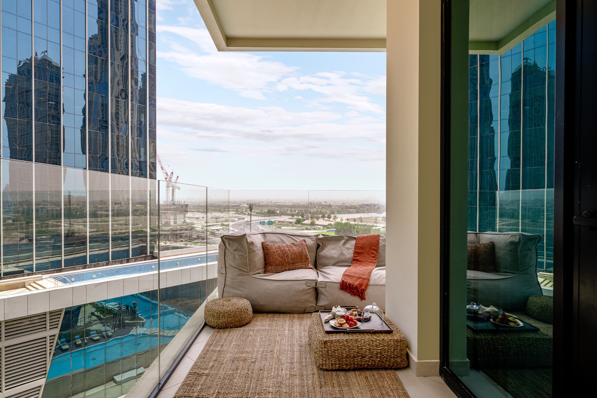Nuestro departamento familiar de 1 dormitorio cuidadosamente diseñado se encuentra en el corazón de Palm Jumeirah de Dubái, justo enfrente del famoso centro comercial Nakheel. El apartamento tiene una cocina totalmente equipada y está situado dentro de un hotel de estilo de vida completo de 5 estrellas, el Andaz Dubai The Palm by Hyatt. El apartamento te ofrece acceso a una variedad de servicios, como acceso a la playa de la comunidad y a la piscina familiar con vistas al Burj Al Arab, varios restaurantes y áreas de relajación solo para adultos (Ora Spa).