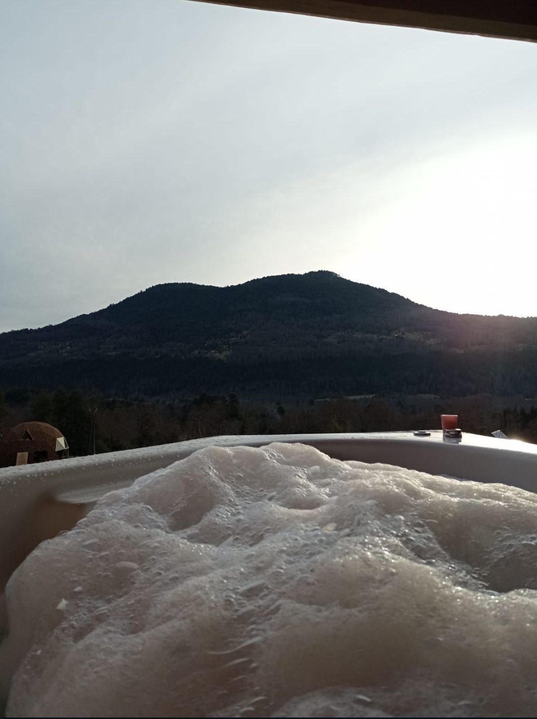 Somos Cabañas Vistas Pucón. Domo para 2, con tinaja propia que se tempera automáticamente entre las 5pm y 10pm a una temperatura ideal (38°C) INCLUIDA EN EL PRECIO. Ademas el domo tiene Aire acondicionado centralizado Estamos en un entorno natural hermoso, con vista privilegiada al lago, montañas, al valle de Pucón y en la noche a un cielo estrellado maravilloso. Está ubicada a 7 Km. (8-10 min.) del centro de Pucón, muy cerca de otros lugares interesantes y atractivos.