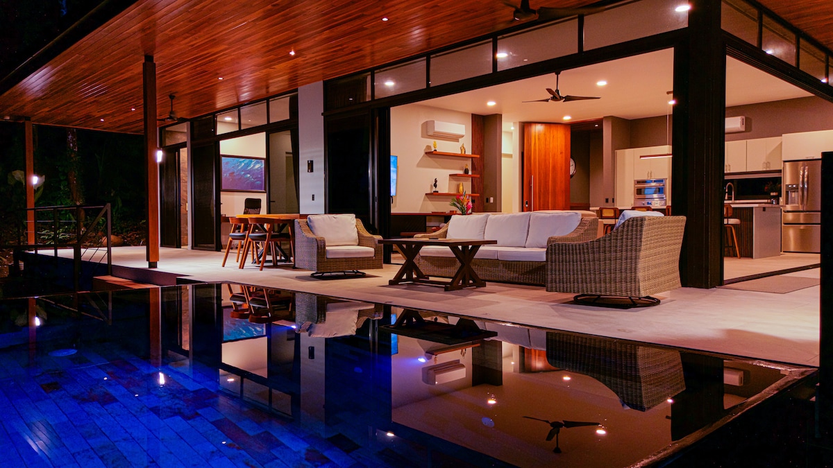 Te enamorarás de la privacidad, la tranquilidad y las fabulosas vistas al océano Pacífico y a la selva tropical de Casa Mariposa. Esta elegante, lujosa, cerrada y cómoda casa en 5,5 acres de bosque lluvioso está a 700 pies sobre el nivel del mar en una comunidad tranquila cerca del Parque Nacional Marino Ballena. Cerca de docenas de restaurantes, excursiones, tiendas y magníficas playas, a 8 minutos en coche de la autopista de la playa, se requiere 4x4. ¡Envíame un mensaje para que nuestro conserje organice excursiones seleccionadas, chef privado y servicios de spa!