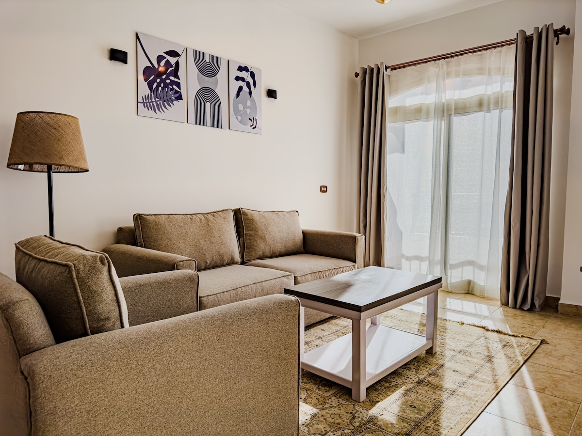 A one-bedroom unit,first floor, 1 min from Colossi of Memnon & Medinet Habu, this cozy first-floor space features a king bedroom, living room, kitchen, bathroom, and balcony with scenic views. Close to Deir el-Medina & Valley of the Queens (3 mins). Luxor Airport: 20 mins. On Memnon's main street near shops, restaurants, and cafés. Easy access to local transport, Indrive, and hot air balloon site nearby—perfect for a comfortable stay!