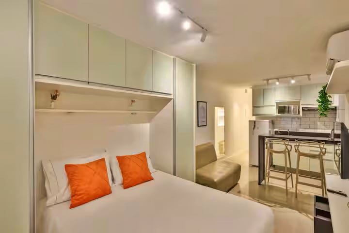 Bienvenido al corazón de Arpoador en Ipanema. Este apartamento totalmente renovado (2022) está a solo 1 cuadra de la playa de Arpoador, en un edificio con portero las 24 horas, comodidad y seguridad. La ubicación es excelente, cerca de la estación de metro General Osório, rodeada de restaurantes, bares, supermercados y una encantadora feria de artesanía brasileña. El espacio es moderno, cómodo y completo: •Aire acondicionado. • Cafetera Nespresso •Lavarropas. •Cama Quem • Baño y aseo.