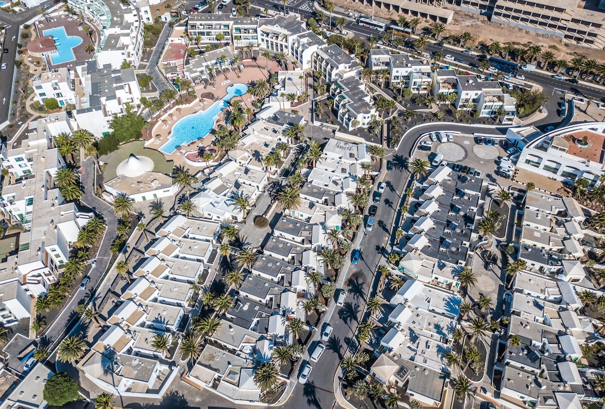 Exclusivo Bungalow Oasis con Terraza Privada, en precioso complejo con piscina, bar y acceso directo al paseo marítimo de Costa Teguise y sus playas: Bastián, El Ancla y El Jablillo. Espacio perfecto para relajarse tomando el sol, viendo las estrellas desde la terraza, o disfrutando del mar. Ubicado en el centro de Lanzarote, al lado de La Mareta (casa del rey D.Juan Carlos), perfecto para escapadas y rutas. Ubicada en exclusiva zona turística con todos los servicios de de ocio y transporte.