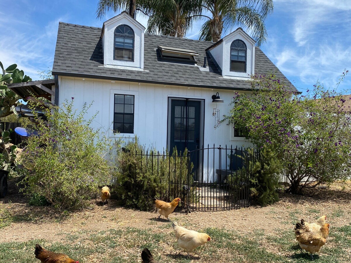 Winterwarm Cottage is the guest house of my rustic mini-farm. It offers a cozy, comfortable getaway and a chance to meet and mingle with a variety of friendly farm animals . Centrally located between the beaches and Temecula Wine Country, both an easy 30 minute drive away, and right around the corner from the Fallbrook Winery. Included in your stay of 3 days or more can be a complimentary wine tasting at the beautiful Fallbrook Winery, ($40 value) or with a 2 day stay, a 2 for 1 tasting.