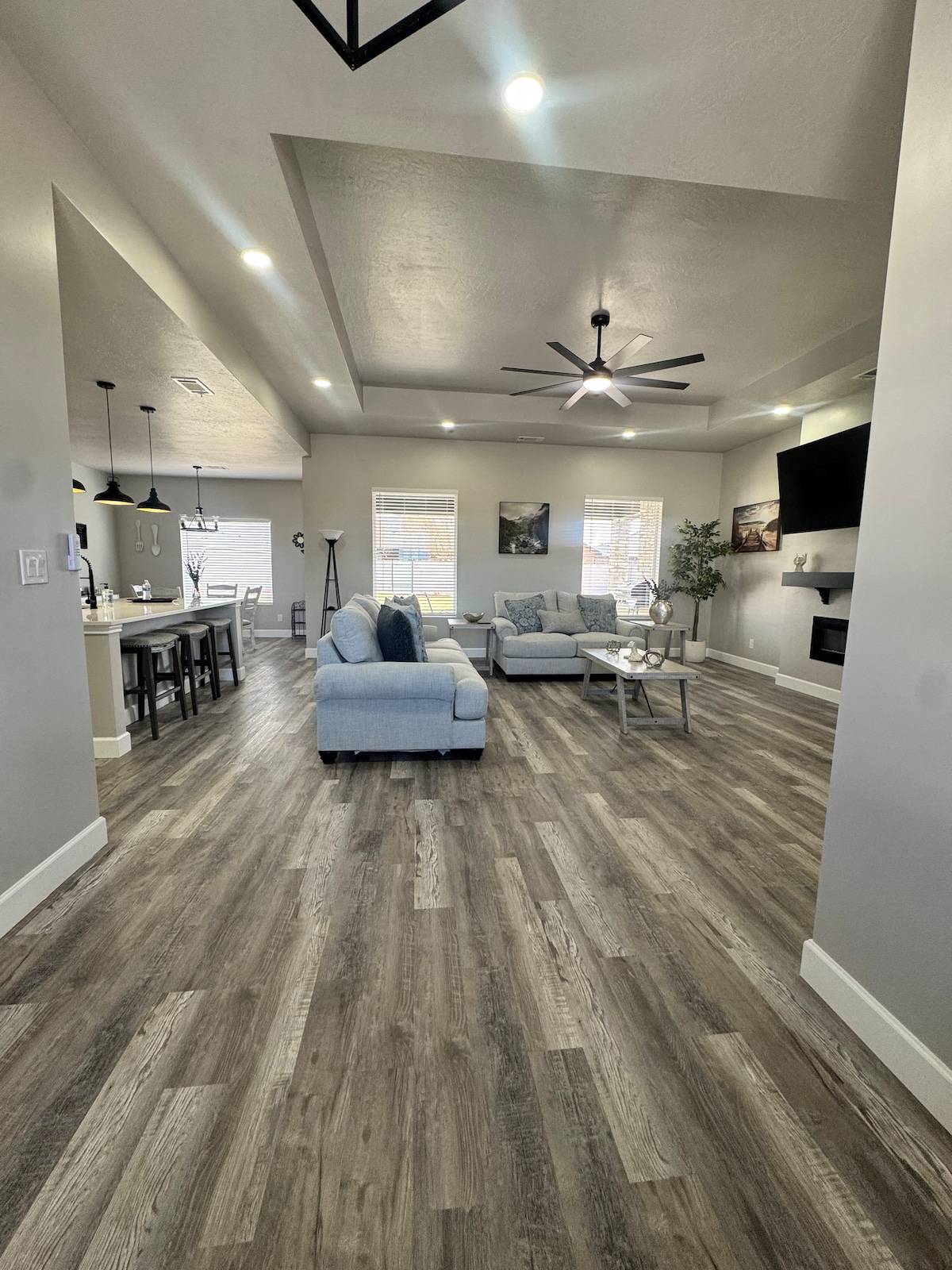 Una casa de diseño que vale la pena visitar. Te encantará cocinar en esta cocina con una isla de 12 pies. El comedor tiene capacidad para 8 personas. Una mesa de billar increíble para divertirse en familia. Disfruta del patio al aire libre, la barbacoa y la zona de fogata. El dormitorio principal cuenta con una cómoda cama tamaño king, escritorio y baño extragrande. El baño es accesible para sillas de ruedas y tiene un lavabo adaptado. Los dormitorios adicionales ofrecen camas tamaño queen, dos baños separados y dos camas plegables con capacidad para 8 personas.