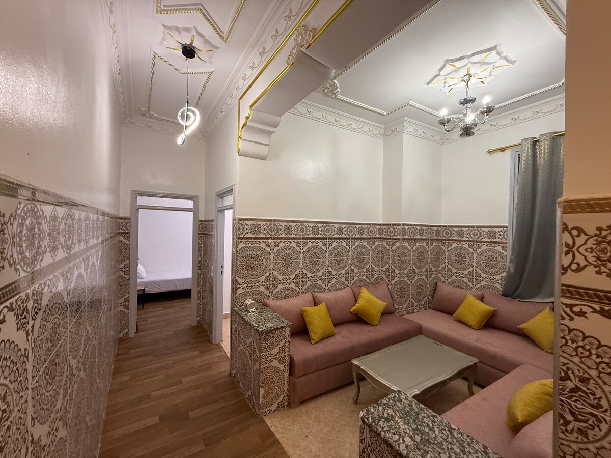 El apartamento consta de 2 dormitorios cerca de todos los sitios y comodidades. - a 3 min andando de la playa. - a 1 minuto andando de la cornisa. -10 minutos a pie de la estación de tren de alta velocidad y City Mall Tánger. -EL edificio está asegurado las 24 horas(cámara en la entrada y conserje) . - Aparcamiento gratuito disponible en el lugar. - La piscina en el exterior del edificio a 5 minutos a pie. - La piscina está abierta en julio y agosto. - Piscina accesible para todos. Baño gratuito para 4 personas, luego 40 DH/persona adicional.
