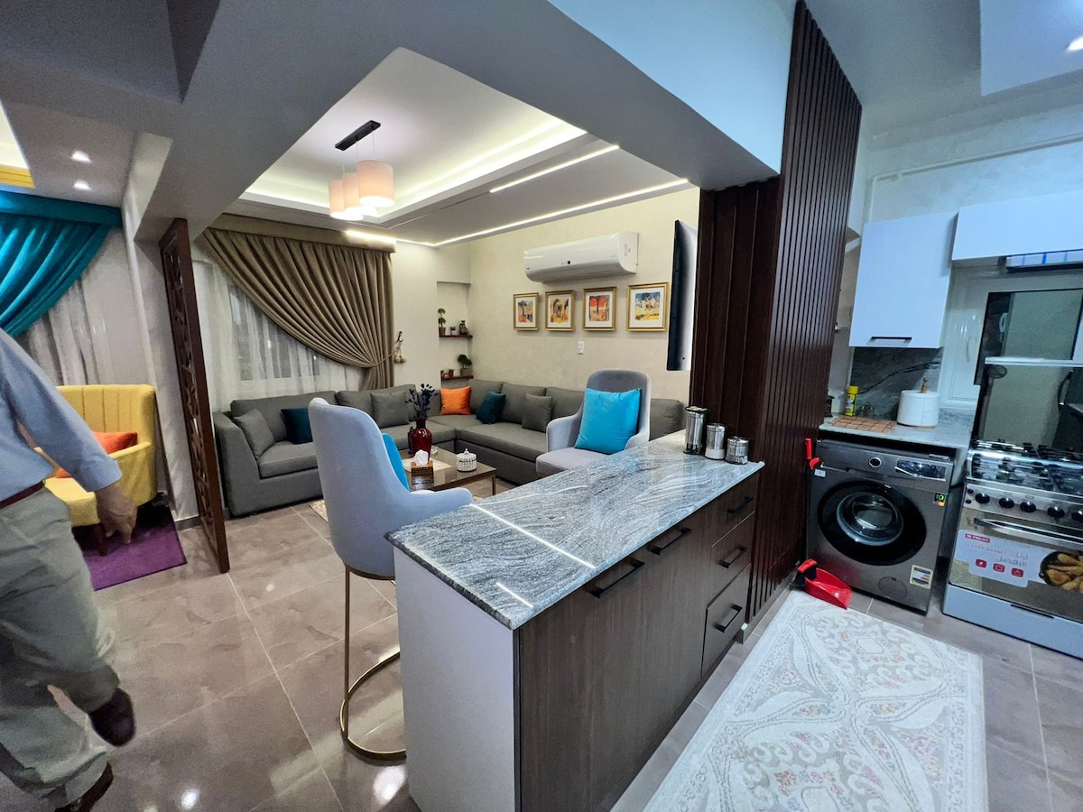 Te damos la bienvenida a tu moderno alojamiento en El Cairo. Este espacioso departamento de 3 dormitorios (250 metros cuadrados) ofrece comodidad, privacidad y estilo. Con 2 baños, 2 balcones privados, aire acondicionado en todas las habitaciones, wifi rápido y una cocina totalmente equipada, es perfecto para familias o estancias de negocios. Diseñado para una experiencia relajada y cómoda.