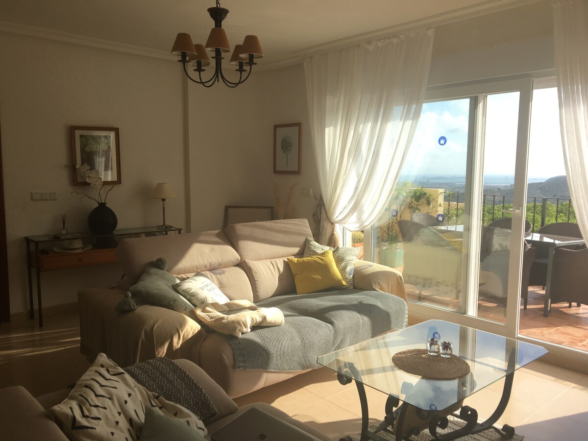 Increíbles vistas sobre el acantilado con intimidad, junto a la playa y restaurantes ideal para actividades en familia en Cabo de Palos . Te va a encantar mi espacio por la luz, la cocina, el espacio acogedor. Ideal para parejas, aventureros, viajeros de negocios, y familias (con hijos o sin hijos). La habitación principal tiene vestidor, vistas al mar y baño en suite en planta independiente; en la planta baja junto al salón, cocina y baño se encuentra la otra habitación con cama matrimonial.