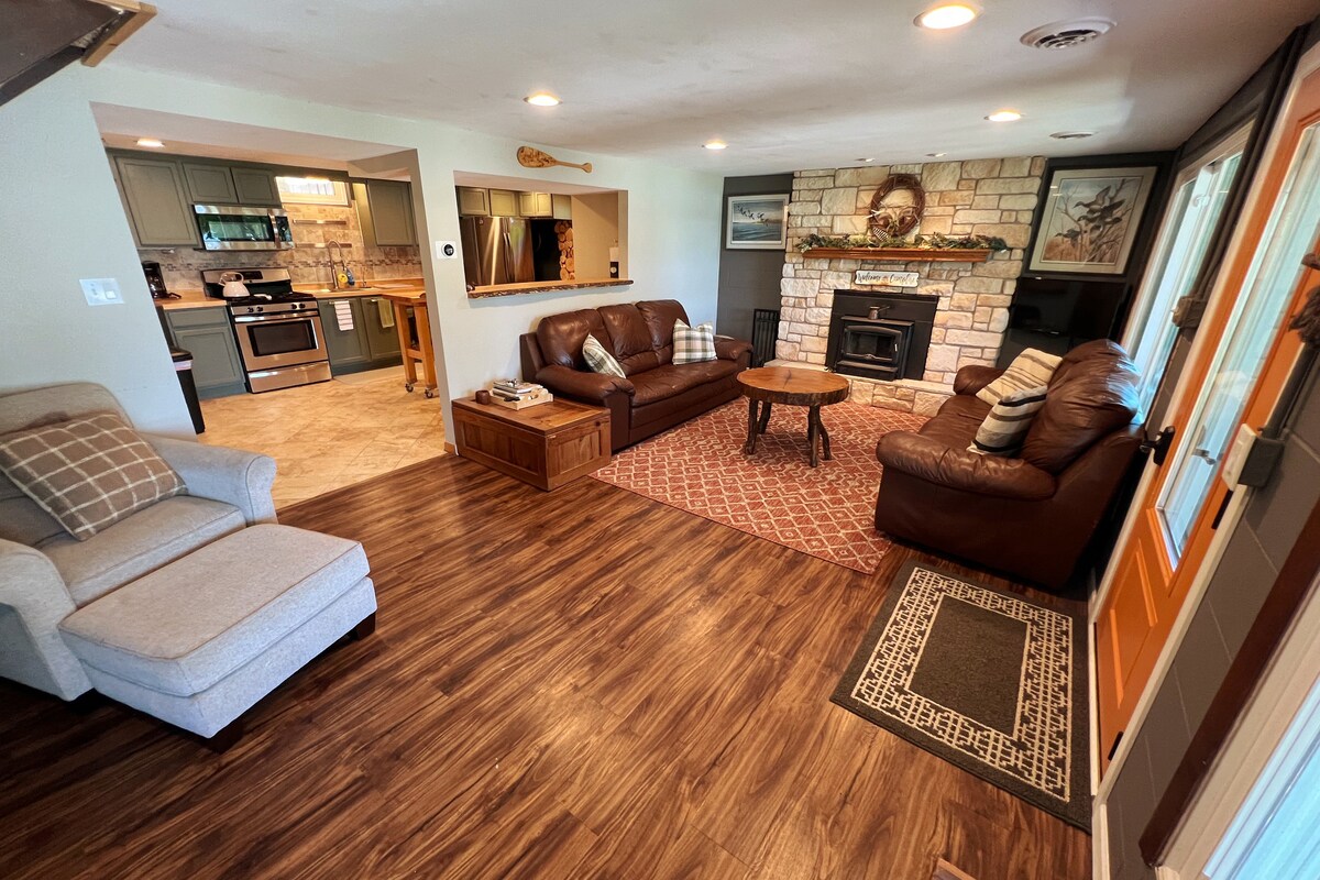 Esta cabaña recientemente remodelada y amueblada con buen gusto, que admite mascotas, cuenta con un encanto único. Ubicada a orillas del lago Long, en el corazón del bosque Kettle Moraine, esta propiedad frente al lago ofrece 45 pies de belleza serena y tranquila. Esta impresionante casa cuenta con un gran patio, acceso al muelle y actividades recreativas durante todo el año. Desconecta, relájate y disfruta de todo lo que ofrece Kettle Moraine. Ya sea que estés de vacaciones con familiares o amigos, este refugio te espera.