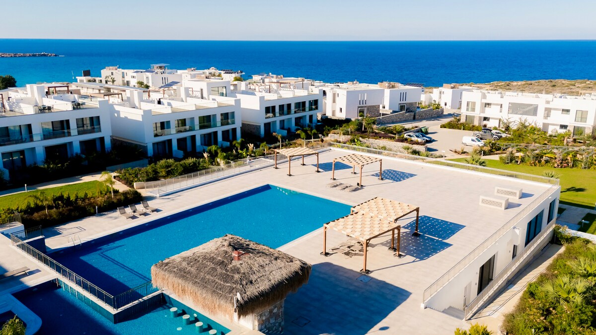 Villa en un sitio privado de vacaciones con acceso directo a la playa y piscina. Tiene su propio jardín y parque infantil. A 5 minutos a pie de un supermercado y un restaurante junto a la playa. A 5 minutos en coche del puerto de Boğaz, que tiene muchos restaurantes junto al mar. A 25 minutos en coche de las antiguas ruinas de Salamis, a 30 minutos en coche de la ciudad de Famagusta y a poca distancia en coche de la península de Karpas. Todas las facturas de servicios públicos (electricidad, agua y wifi) están incluidas en el precio.