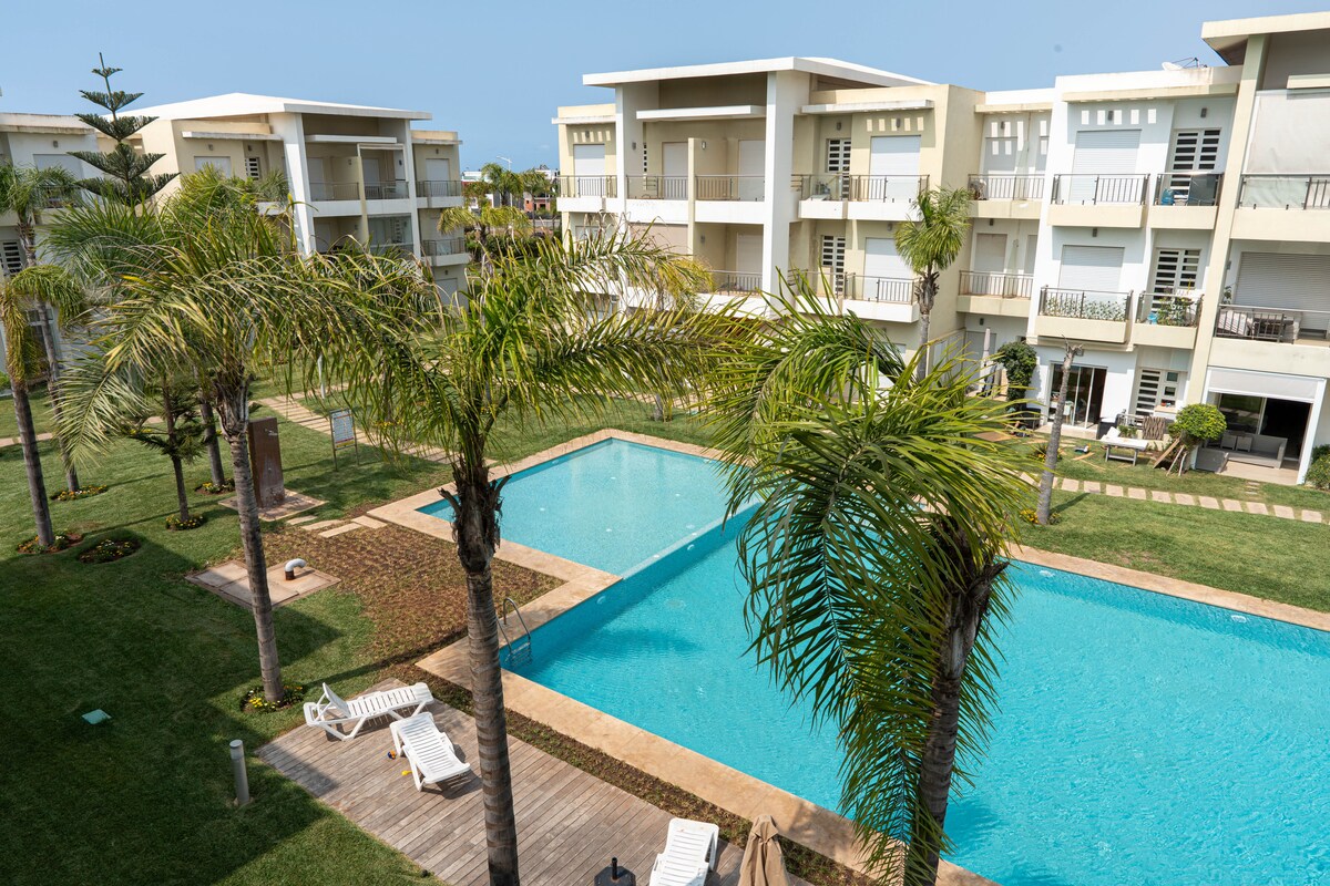 Bienvenido a este moderno y elegante alojamiento en una residencia privada con acceso directo al mar 6 piscinas Campo polideportivo Parque infantil Supermercado Cafetería Le encantará Ubicación ideal Situado a solo 33 km de Casablanca y a 45 km del aeropuerto Mohamed V Imagínese relajarse en un apartamento cómodo y acogedor, ubicado en el corazón de un oasis verde a lo largo del océano Atlántico. Reserve ahora y déjese seducir por esta joya de evasión.