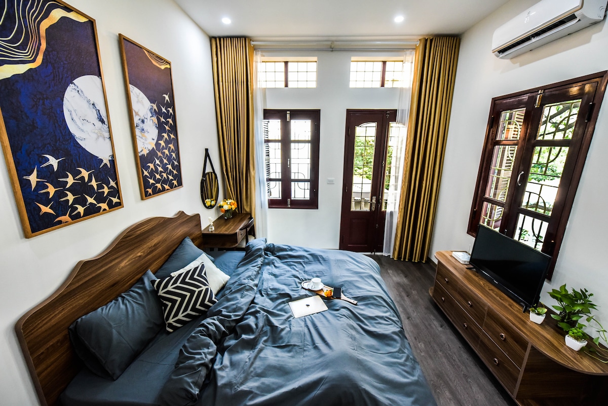 Imagina beber una taza de café especial de la casa, contemplar la vista siempre verde de Hanói y disfrutar de la luz del sol temprana que llega directamente al pequeño balcón y a la amplia ventana de cristal, todo mientras experimentas el espacio vital y de trabajo de un verdadero artista. Al apartamento revestido de madera le sigue una galería de fotos en el tercer piso. Además, estás en la zona más histórica de la capital, donde se encuentran tanto la Ciudadela Imperial de Thang Long como el Mausoleo de Ho Chi Minh.