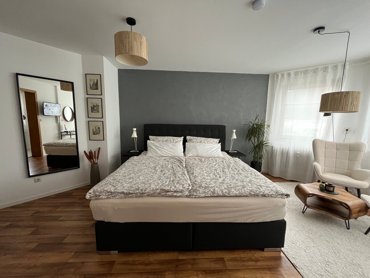 Nuestro bonito apartamento en el sótano está integrado en nuestro edificio residencial. Se encuentra en la planta baja a la derecha y tiene una entrada independiente. La cocina ofrece una amplia cocina americana con zona de comedor, cafetera, tostadora, nevera grande, hervidor de agua y microondas. El dormitorio está equipado con un televisor de pantalla plana y un sofá relajante. El apartamento está muy bien situado, la plaza del mercado se encuentra a 3 minutos a pie.