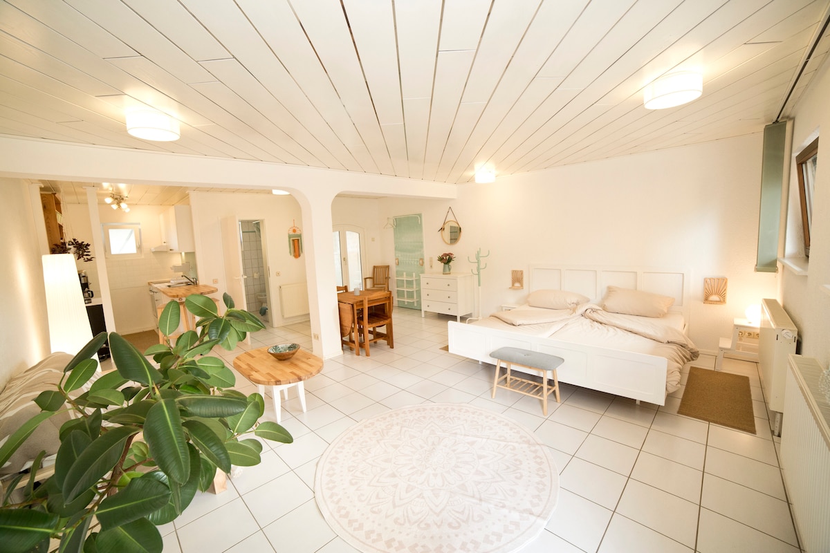 In unserer komfortabel eingerichteten Studio - Wohnung, in trendigem Landhausstil, kannst Du entspannen und bist trotzdem schnell mitten im Geschehen. Die Wohnung steht zu Deiner alleinigen Verfügung, hat einen eigenen Zugang und Parkplatz, ist allerdings nicht barrierefrei erreichbar. Dafür hast Du eine eigene Terrasse mit Blick in den Garten. Hier kannst Du entspannen und Deine Auszeit genießen.